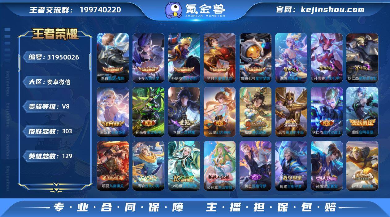 【店长推荐·全息碎影·鸣剑曳影·星域神启·九霄神辉·弑枪猎影·江户川柯南·怪盗基德·纵目迁山·愿照山河定·寅虎赤拳·李逍遥·祈雪灵祝】【可二次】YXw17808-安卓Q-127英雄-326皮肤-13王者印记-300铭文-贵族积分8w【贵族8】【5典藏·2珍品·3星传说·22传说·23按键·幸运值100】【因赛季更新游戏段付以上号为准!】 【英雄全皮】:孙权全皮,蒙恬全皮,司空震全皮 【荣耀典藏】:孙悟空全息碎影,李白鸣剑曳影,诸葛亮星域神启,花木兰九霄神辉,韩信弑枪猎影 【珍品传说】:鲁班七号江户川柯南,马可波罗怪盗基德 【星元皮肤】:刘备时之思念,孙尚香未来机甲,宫本武藏幽冥之眼 【传说皮肤】:杨戬纵目迁山,后羿神树通天,曹操万灵伏威,公孙离云诺千山,司空震愿照山河定,澜愿照九州拓,桑启鸣野蒿,马可波罗妄想实况,公孙离记忆之芯,马超无双飞将,蔡文姬花朝如约,裴擒虎寅虎赤拳,曜李逍遥 ,公孙离祈雪灵祝,虞姬启明星使,孙悟空零号赤焰,李信一念神魔,刘备时之恋人,达摩黄金狮子座,诸葛亮武陵仙君,孙尚香末日机甲,宫本武藏地狱之眼 【限定皮肤】:姜子牙天穹之誓,狄仁杰阴阳师,赵云皇家上将,墨子神迹守卫,孙尚香蔷薇恋人,吕布御风骁将,元歌云间偶戏,元歌无心,马可波罗逐梦之星,马可波罗暗影游猎,马可波罗山海玄木吟,马可波罗妄想实况,狄仁杰魔术师,狄仁杰万华元夜,达摩星际陆战队,达摩沙漠行僧,项羽海滩派对,程咬金演武夺筹,王昭君凤凰于飞,兰陵王金庭之子,花木兰默契交锋,亚瑟潮玩骑士王,孙悟空至尊宝,孙悟空零号赤焰,后羿如梦令,李元芳云中旅人,虞姬启明星使,钟馗驱傩正仪,干将莫邪冰霜恋舞曲,雅典娜黎明之约,鬼谷子五谷丰年,诸葛亮武陵仙君,黄忠烈魂,百里玄策原初追逐者,梦奇顽趣,公孙离祈雪灵祝,沈梦溪大漠名商,裴擒虎李小龙,裴擒虎寅虎赤拳,裴擒虎擒涛扼浪...