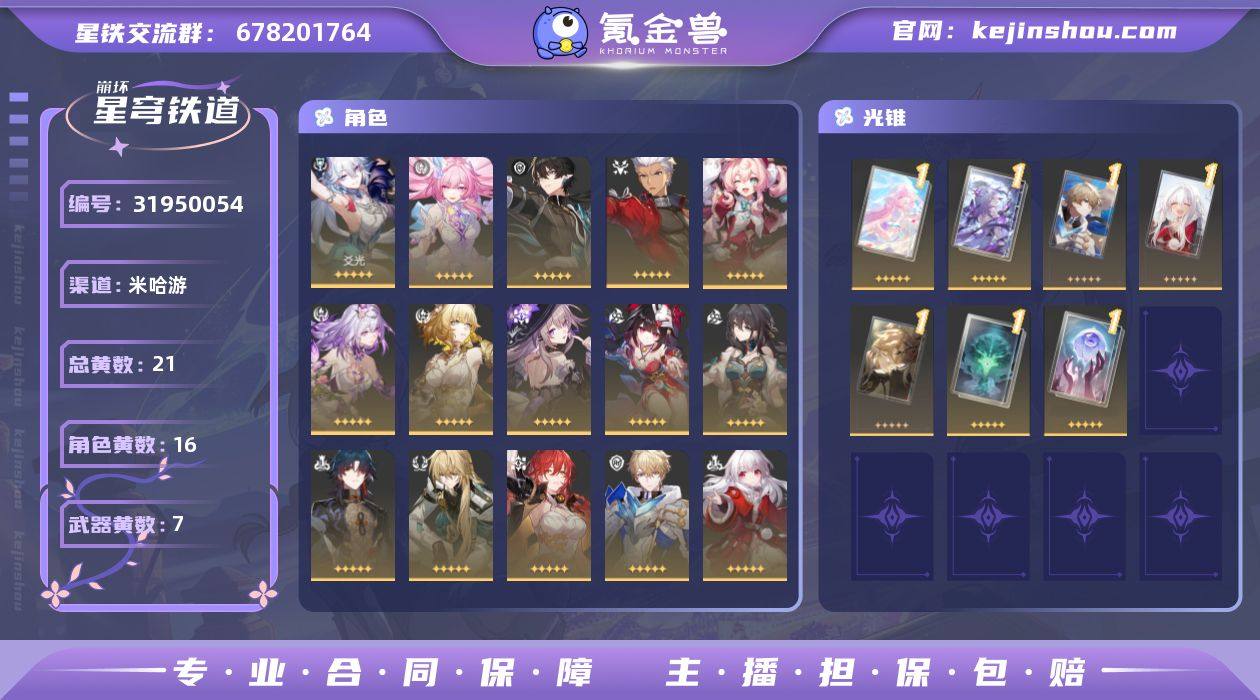 总黄数:21 五星光锥数:7 五星角色数:16 开拓者性别:女 星轨专票:0 梦华数量:121 星琼数量:46 0命爻光,0命昔涟,0命丹恒·腾荒,0命Archer,0命风堇,0命遐蝶,0命阿格莱雅,0命大黑塔,0命花火,0命阮·梅,0命刃,0命罗刹,0命姬子,0命杰帕德,0命克拉拉,0命彦卿 1精爱如此刻永恒,1精让告别,更美一些,1精制胜的瞬间,1精无可取代的东西,1精如泥酣眠,1精不息的演算,1精记忆永不落幕 换绑材料:可提供换绑材料 邮箱状态:未绑定 psn绑定情况:否 taptap绑定情况:否 卖家说:买一赠二 送原神号 绝区零号 如图 喜欢的可议价
