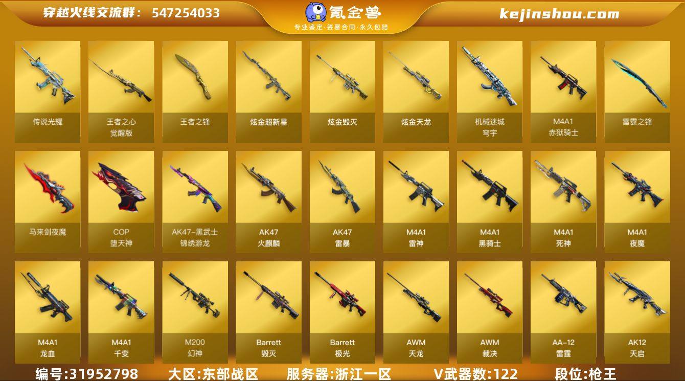 XXCF103【122V 传说1 王者4 炫金3】【等级】102【区服】浙江一区【VIP】4【段位】枪王4【英雄角色】2【英雄武器】122【传说级武器】传说光耀【王者级武器】王者之势-觉醒版 王者之锋 王者之心-觉醒版 王者之魄-觉醒版【炫金级武器】炫金天龙 炫金超新星 炫金毁灭【英雄级角色】春 凌霄【英雄级武器】M4A1-苍鸣雷神 机械迷城-穹宇 黑武士-锦绣游龙 USP-雷暴 斩神刀-雷暴 高爆手雷-雷暴 烟雾弹-雷暴 烟雾弹-雷暴 烟雾弹-雷暴 闪光弹-雷暴 闪光弹-雷暴 闪光弹-雷暴 高爆手雷-雷暴 高爆手雷-雷暴 高爆手雷-雷暴 烟雾弹-雷暴 闪光弹-雷暴 汤姆逊-烈龙 汤姆逊-烈龙 汤姆逊-烈龙 汤姆逊-烈龙 汤姆逊-烈龙 汤姆逊-烈龙 烟雾弹-夜魔 高爆手雷-夜魔 闪光弹-夜魔 烟雾弹-夜魔 高爆手雷-夜魔 闪光弹-夜魔 M4A1-夜魔 破空枪刃-夜魔 COP-堕天神 马来剑-夜魔 烟雾弹-夜魔 高爆手雷-夜魔 闪光弹-夜魔 烟雾弹-夜魔 M4A1-夜魔 高爆手雷-夜魔 闪光弹-夜魔 烟雾弹-夜魔 高爆手雷-夜魔 闪光弹-夜魔 烟雾弹-夜魔 高爆手雷-夜魔 闪光弹-夜魔 烟雾弹-夜魔 高爆手雷-夜魔 闪光弹-夜魔 M4A1-雷神 M4A1-雷神 雷霆之锋 高爆手雷-雷霆 烟雾弹-雷霆 闪光弹-雷霆 M200-幻神 AK47-火麒麟 屠龙 M4A1-龙血 AWM-裁决 屠龙 麒麟刺 M4A1-千变 M4A1-千变 擎天 AA-12-雷霆 龙啸 USP-雷暴 高爆手雷-雷暴 烟雾弹-雷暴 闪光弹-雷暴 高爆手雷-雷暴 烟雾弹-雷暴 闪光弹-雷暴 AK47-雷暴 高爆手雷-雷暴 烟雾弹-雷暴 闪光弹-雷暴 USP-雷暴 高爆手雷-雷暴 烟雾弹-雷暴 闪光弹-雷暴 高爆手雷-雷暴 烟雾弹-雷暴 闪光弹-雷暴 斩神刀-雷暴 高爆手雷-雷暴 烟雾弹-雷暴 闪光弹-雷暴 高爆手雷-雷暴 烟雾弹-雷暴 闪光弹-雷暴 麒麟刺 M4A1-死神 Barrett-毁灭 AN94-超新星 M4A1-死神 Barrett-暗月传说 AK-47-猩红传说 AWM-