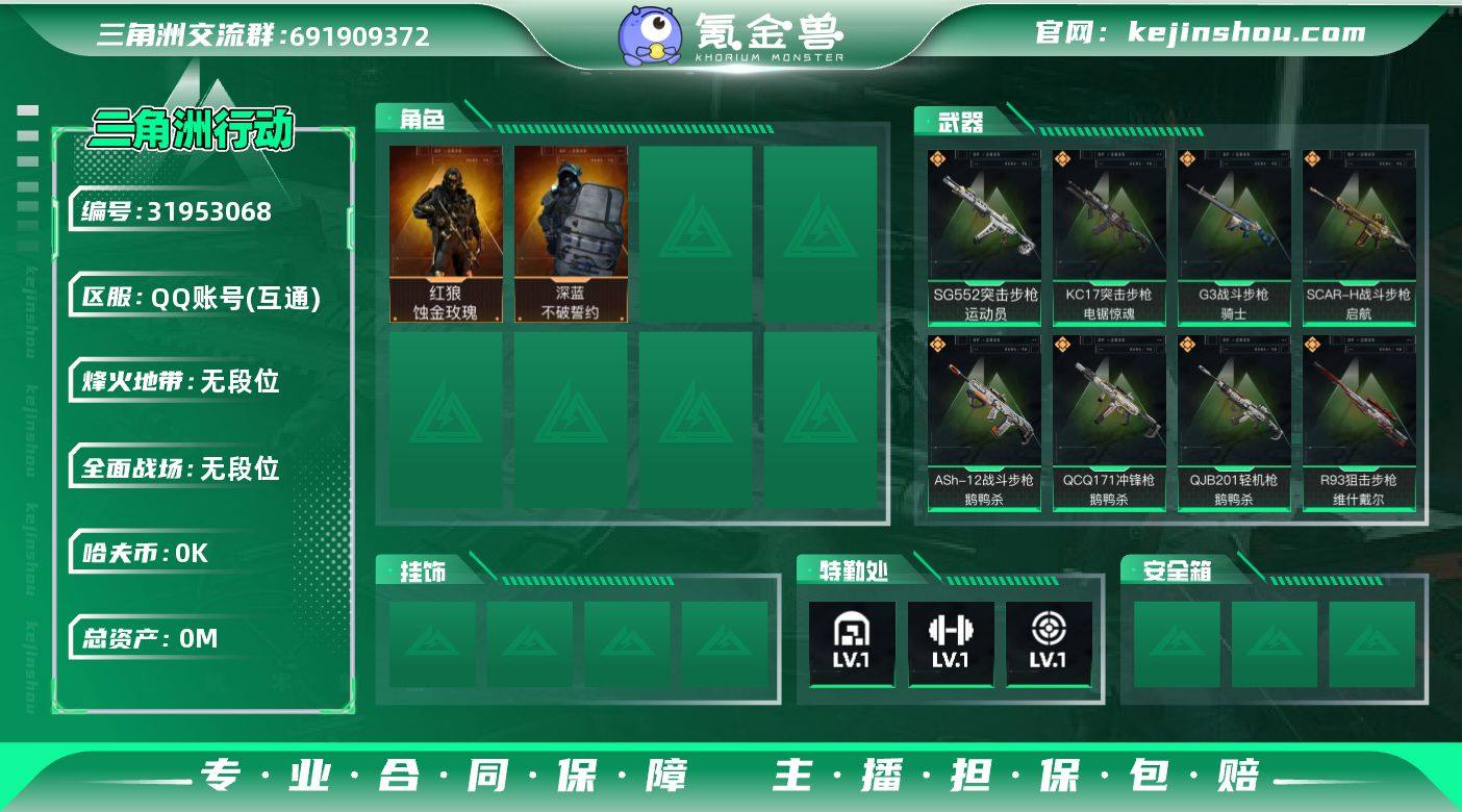 WLSJZ742【总资产200M 蚀金玫瑰 天才少年 满体满负重】 三段互通Q-总资产 200M 哈夫币 8.340K-烽火地带等级60-烽火地带段位黑鹰 【干员皮肤】 深蓝-不破誓约 红狼-蚀金玫瑰 【枪皮】 M4A1突击步枪-粉色涂装 M4A1突击步枪-高雅黑 M4A1突击步枪-海色 M4A1突击步枪-零点 M4A1突击步枪-繁盛 M4A1突击步枪-阿米娅 M4A1突击步枪-蚀金玫瑰 AKM突击步枪-战术演练 AKM突击步枪-肃杀 AKM突击步枪-林中猎手 QBZ95-1突击步枪-高雅黑 QBZ95-1突击步枪-海浪 QBZ95-1突击步枪-三角洲力量 QBZ95-1突击步枪-公平竞技 AKS-74U突击步枪-磐石 AKS-74U突击步枪-前沿科技 AKS-74U突击步枪-冰天雪地 ASh-12战斗步枪-繁盛 ASh-12战斗步枪-无极限 ASh-12战斗步枪-鹅鸭杀 K416突击步枪-几何迷彩 K416突击步枪-高雅黑 K416突击步枪-碳纤维 K416突击步枪-前沿科技 K416突击步枪-银影杀手 M16A4突击步枪-干旱区 M16A4突击步枪-高雅黑 AUG突击步枪-浅蓝涂装 AUG突击步枪-蝮蛇 M7战斗步枪-红色涂装 M7战斗步枪-黑巧甜心 M7战斗步枪-捣蛋鬼 SG552突击步枪-浅蓝涂装 SG552突击步枪-海浪 SG552突击步枪-深海恐惧 SG552突击步枪-哈夫克警备 SG552突击步枪-运动员 AK-12突击步枪-变色龙 AK-12突击步枪-零点 SCAR-H战斗步枪-数码迷彩 SCAR-H战斗步枪-电路图 SCAR-H战斗步枪-荣耀列队 SCAR-H战斗步枪-黄昏 SCAR-H战斗步枪-启航 G3战斗步枪-高雅黑 G3战斗步枪-干旱区 G3战斗步枪-战术演练 G3战斗步枪-主宰 G3战斗步枪-流沙送葬 G3战斗步枪-骑士 PTR-32突击步枪-黄蜂 PTR-32突击步枪-条纹 PTR-32突击步枪-天网 CAR-15-电路图 CAR-15突击步枪-变色龙 CAR-15突击步枪-亚特兰蒂斯 CAR-15突击步枪-前沿科技