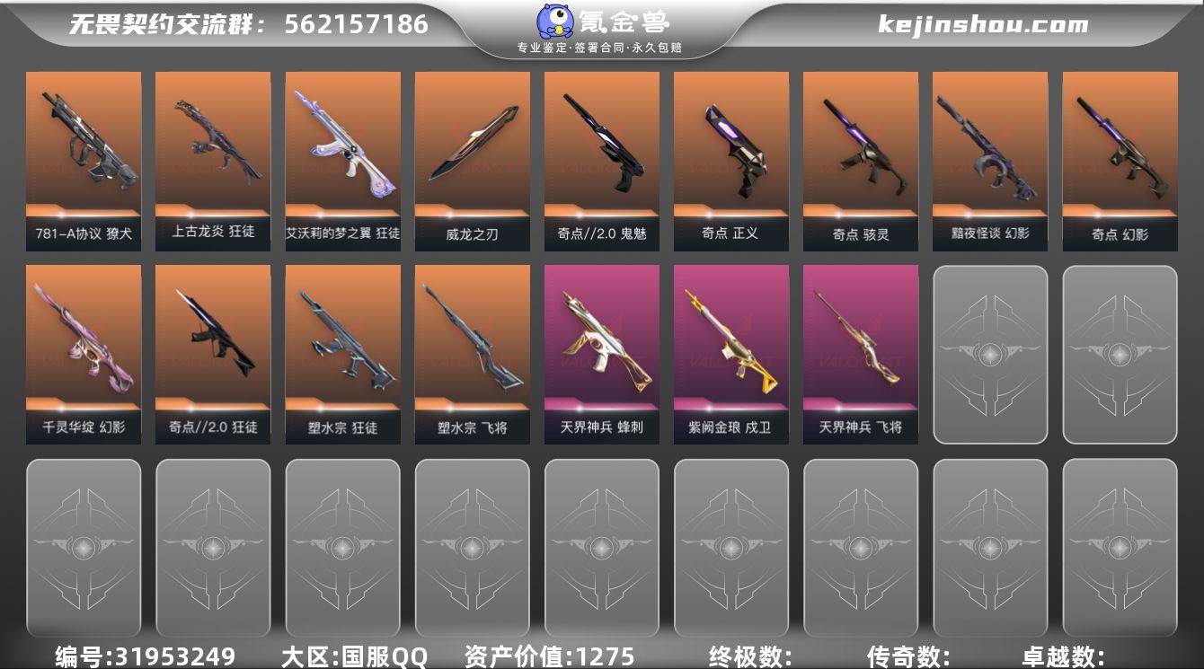 皮肤资产价值: 1275