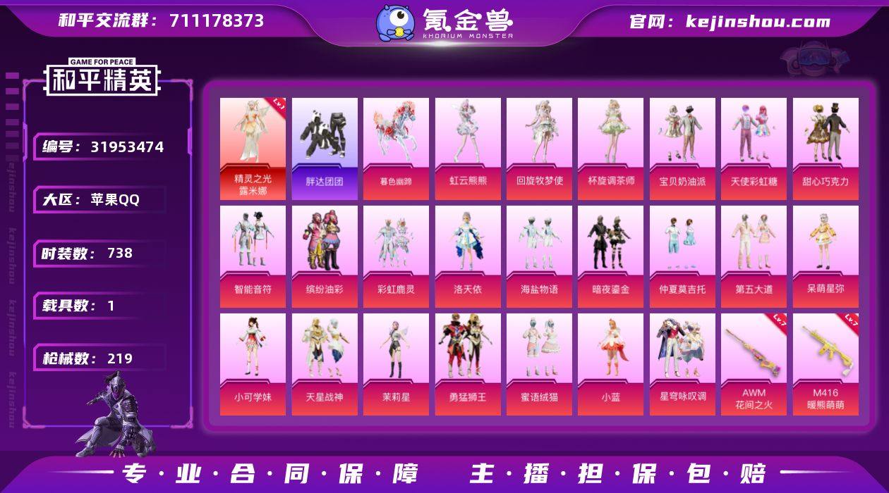 苹果 微信-无敌战神框-31粉装-9特效枪-8载具-6粉色飞行器-123751热力值-25王牌印记-217套装-252枪皮【热门品类】:粉装-雪国幻梦,粉装-梦幻火箭,粉装-童趣迷兔,粉装-缤纷油彩,套装-浪漫天命,套装-深海小丑鱼,套装-小丑鱼,套装-胖达团团,套装-胖达圆圆,套装-潮萌小黄鸭,套装-暗影哥特,套装-浪漫波比【粉色套装】:粉装-甜心巧克力,粉装-宝贝奶油派,粉装-天使彩虹糖,粉装-雪国幻梦,粉装-精灵迷巫,粉装-梦幻火箭,粉装-缤纷油彩,粉装-狩月元帅,粉装-琉璃脉冲,粉装-锦绣火鲤,粉装-草莓生巧,粉装-冰霜白皇,粉装-童趣迷兔,粉装-炙焰红王,粉装-香水柠檬,粉装-暗翼战神,粉装-馨动时刻,粉装-彩虹鹿灵,粉装-山涧鹿灵,角色-洛天依,粉装-甜心娃娃,粉装-精灵娃娃,粉装-酣梦娃娃,粉装-薄荷物语,粉装-橘柚倾心,粉装-妙趣可丽,粉装-灵感创作师,粉装-旋转彩虹,粉装-冰川幽秘,粉装-冰川红玫,角色-樱桃泡泡【粉色枪皮等级】:AKM-甜心宝贝(五级),SCAR-L-梦幻火箭(六级),M416-心之恋语(七级),GROZA-旋转彩虹(七级),M762-甜蜜誓约(七级),UMP45-雪国精灵(七级),Kar98K-巳巳如意(一级),AWM-橘柚倾心(四级),Mk14-樱桃泡泡(五级)【粉色载具】:特斯拉Roadster(尊享铂),阿斯顿马丁DBS(金),玛莎拉蒂Ghibli(粉),海龙奔腾,萌喵橘座,双人摩托-梦幻火箭,鬼马风驰,空客H135-蔚蓝之翼,晶梦灵驹【粉色枪皮】:AKM-甜心宝贝,SCAR-L-梦幻火箭,M416-心之恋语,GROZA-旋转彩虹,M762-甜蜜誓约,UMP45-雪国精灵,Kar98K-巳巳如意,AWM-橘柚倾心,Mk14-樱桃泡泡【粉色飞行器】:春暖花开飞行器,梦幻火箭飞行器,神秘黑猫飞行器,绮梦青鸾飞行器,星夜魔法师飞行翼,彩虹独角兽飞行器【粉色降落伞】:深海曼妙降落伞,甜心宝贝降落伞,春暖花开降落伞,梦幻火箭降落伞,神秘黑猫降落伞,...