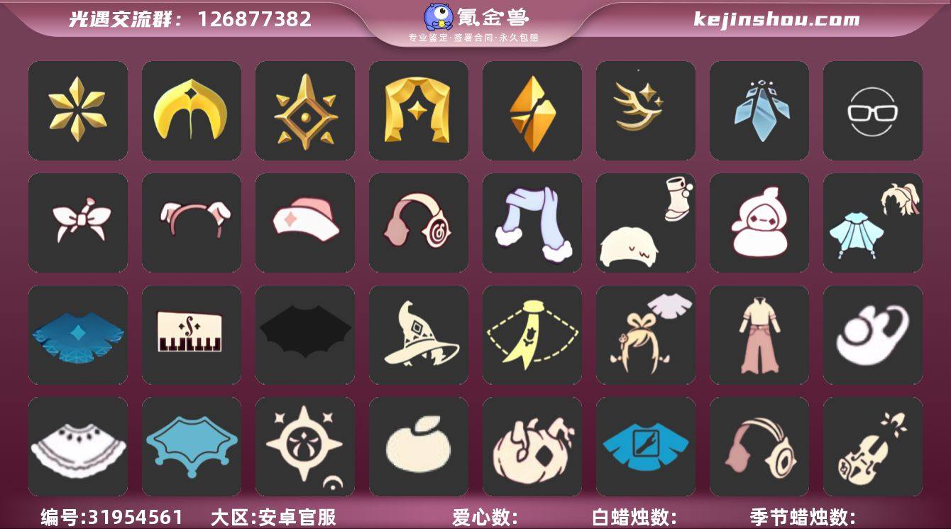HM1981 ios GYCDBX 号 【毕业图】晨岛,云野,雨林,霞谷,暮土 【毕业季】音韵季,预言季,圣岛季,表演季,拾光季,二重奏季,姆明季,彩染季,青鸟季,双星季,迁徙季 【蜡烛】768 【爱心】104 【稀有礼包】彩虹武士裤,牛仔裤,兔子拖鞋,圣诞雪人,跃动跑鞋,皮皮猫礼包,星月头冠,彩虹耳机,火焰眼镜,圣诞鹿角,巫树犄角,大蝴蝶结,巫师帽,雪花发夹,玉兔发饰,小狗周年头饰,四叶草头饰,蓝色音乐会,创始人斗篷,小王子围巾,欧若拉之翼,蝙蝠斗,蛛网斗篷,透明蜘蛛斗,白雪斗篷,绊爱礼包,惊喜手杖,瑞气纸伞,情人秋千,花憩茶桌,猫咪背饰,雪花水晶球,周年庆抱枕,大铁头,满月耳坠,日光耳环,史力奇帽子礼包,史力奇套装礼,姆明饰品套装,树精肩饰礼包,恶作剧飞行扫帚礼包,献瑞折扇礼包,衔福献瑞礼包,渐变双马尾发饰礼包,心心相印发饰礼包,南瓜头,必胜客联动披萨,必胜客联动衣服,青衫落拓礼包,周年影院套餐礼包,蝴蝶与花发饰,日光水母套装,皮皮猫套装 【毕业物品】白鸟发型,颊纹三角,手拍大鼓,阿努比斯,毕业手碟,鳐鲲斗篷,凤凰面具,帝企鹅发,黄眉企鹅面具,燕尾斗篷,肩带,西部帽,粗框眼镜,季卡相机,白色高脚钢琴,蓝色燕尾服,合奏挂画,姆明抱枕,姆明大伞,妮妮长裙,彩染围巾斗篷,辉光羚羊面具,青鸟斗篷,青鸟面饰,蓝色星星光环,暮星斗篷,蓝色毛绒绒鞋,蓝色毛绒裤子,海牛鹿角头饰 【热门复刻】绿芽,海洋斗,武士裤,虚荣,正太头,猫猫头,搓澡巾,花环长发,红耳机,箬笠,平顶帽,雨伞,高音钢琴,白金斗篷,黑金斗篷,红金斗篷,黄鼠狼面具,女巫发型