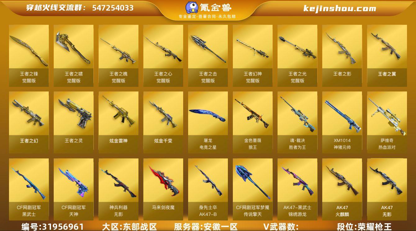 YXB 特价秒杀【安徽一区】【不可二次实名】【可排位】【荣耀之巅】【会员等级VIP6】【CF点21233】【V武器数122】【幻神1皮】【6烈龙】【毒蜂】【死亡之眼】【竞技荣光套装X2套】【夜魔套装X5套】【雷暴套装X1套】【传说光耀】【M200-幻神】【幻神-冠军之幻】【王者幻神-觉醒版】【Kar98K-星神】【AWM-裁决】【裁决-胜者为王 皮肤】【Scar Light-白虎】【白虎-量子聚变 皮肤】【QBZ03-金色蔷薇】【QBZ03-AG-CFPLS19冠军】【G36C-幻影】【幻影-量子聚变 皮肤】【HK417-朱雀】【M4A1-夜魔】【USP-雷暴】【荣耀世冠-柯尔特】【破空枪刃-夜魔】【宙斯权杖】【加特林-炼狱】【RPK-盘龙】【汤姆逊-烈龙】【毒蜂】【死亡之眼】【春】【电竞教官-云悠悠】【葵】【零】【迷迭香】【王者-葵-貂蝉】【王者-瞳-闭月羞花】【王者-魅影】【王者葵-惊若翩鸿】【王者玲珑】【王者零-华冠丽服】【樱】【空】【M4A1-雷神】【雷神-宠儿-2019MVP】【雷神-机甲刑天皮肤】【雷神-能量核心】【雷神-耀金皮肤】【雷神-星空】【雷神-暗月】【M4A1-雷神音效卡】【AK47-火麒麟】【火麒麟-心动糖果】【火麒麟-CFSTAR】【火麒麟-雷神】【M4A1-黑骑士】【黑骑士-伏羲】【黑骑士-暗月】【M4A1-黑骑士音效卡】【M4A1-黑龙】【黑龙-能量核心】【Barrett-毁灭】【毁灭-荣耀之怒】【毁灭-冠军之怒】【毁灭-暗月】【毁灭-风暴】【毁灭-黑大圣皮肤】【Barrett-毁灭音效卡】