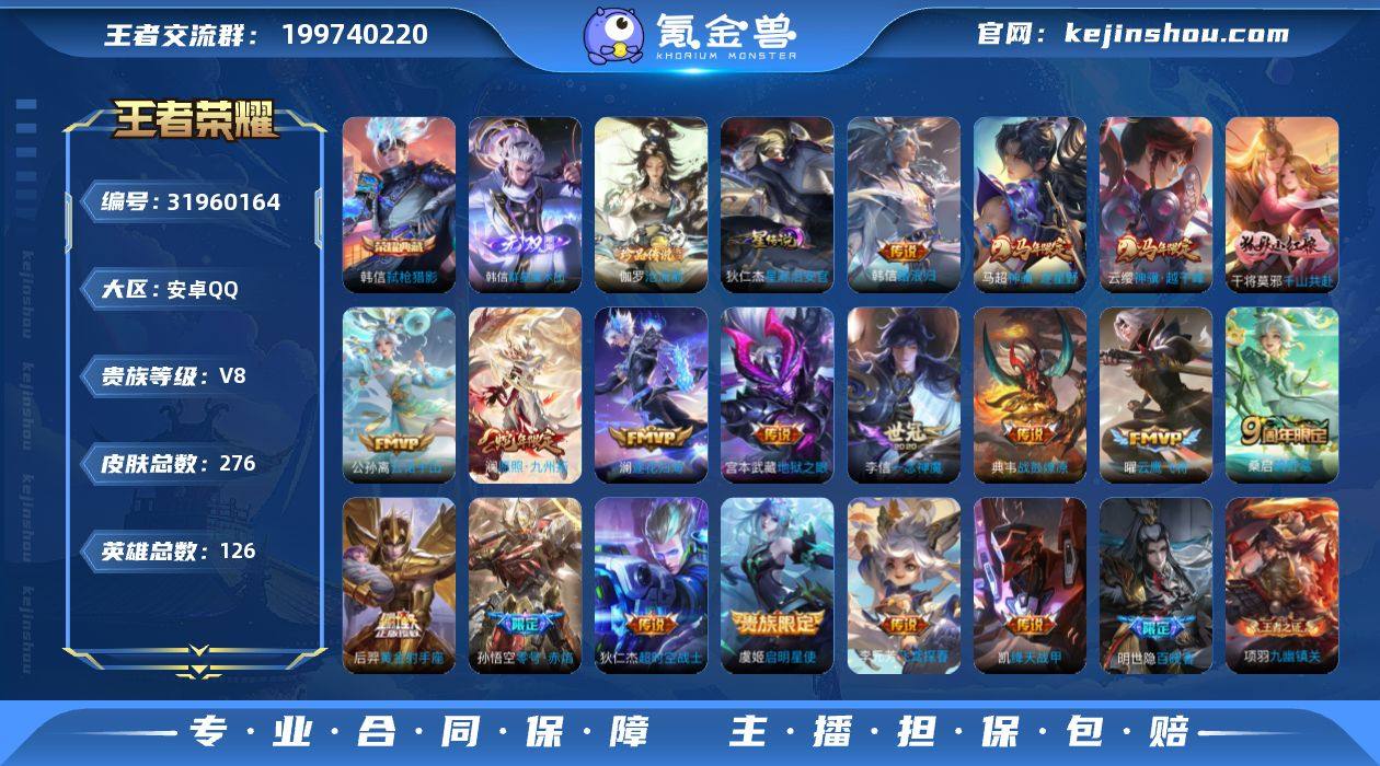 BHC30303,1星元*16按键,安卓Q-V8-最强王者段位-126英雄-276皮肤-1典藏皮肤-1无双-1珍品传说-18传说-75史诗 【英雄全皮】:孙权全皮,敖隐全皮,海诺全皮 【荣耀典藏】:韩信弑枪猎影 【无双皮肤】:韩信群星魔术团 【珍品传说】:伽罗沧流箭 【传说皮肤】:韩信踏浪归,云缨神骥越千峰,马超神骥逐星野,干将莫邪千山共赴,公孙离云诺千山,澜愿照九州拓,桑启鸣野蒿,典韦战鼓燎原,澜逐花归海,李元芳飞鸢探春,铠绛天战甲,虞姬启明星使,孙悟空零号赤焰,曜云鹰飞将,李信一念神魔,后羿黄金射手座,宫本武藏地狱之眼,狄仁杰超时空战士 【限定皮肤】:姜子牙天穹之誓,狄仁杰阴阳师,赵云皇家上将,墨子神迹守卫,孙尚香蔷薇恋人,庄周高山流水,高渐离玩趣恶龙,阿轲迷踪丽影,钟无艳超时空战士,芈月幻夜卜梦,元歌云间偶戏,元歌无心,甄姬落雪兰心,马可波罗暗影游猎,狄仁杰魔术师,狄仁杰万华元夜,达摩星际陆战队,达摩沙漠行僧,项羽海滩派对,老夫子醍醐杖,老夫子航海奇遇记,程咬金演武夺筹,韩信逐梦之影,韩信傲雪梅枪,王昭君午后时光,兰陵王金庭之子,花木兰默契交锋,亚瑟潮玩骑士王,孙悟空零号赤焰,牛魔御旌,后羿如梦令,李元芳云中旅人,虞姬启明星使,钟馗驱傩正仪,杨玉环遇见飞天,干将莫邪胡桃夹子,雅典娜黎明之约,鬼谷子原初探秘者,鬼谷子五谷丰年,黄忠火炮绅士,苏烈千军破阵,百里玄策原初追逐者,弈星混沌棋,沈梦溪大漠名商,明世隐疑决卦,裴擒虎李小龙,裴擒虎擒涛扼浪,狂铁电玩高手,米莱狄胡桃异想国,云中君纤云弄巧,伽罗天狼溯光者,盾山御銮,猪八戒西部大镖客,鲁班大师探海日志,镜匿光追影者,桑启海盐诗旅,阿古朵江河有灵,张良古海寻踪,妲己灵卜魔法,鬼谷子天穹祈灯,沈梦溪龙舞盛年,刘邦剑破天穹,韩信群星魔术团,海诺心动手记 【年限皮肤】:澜愿...