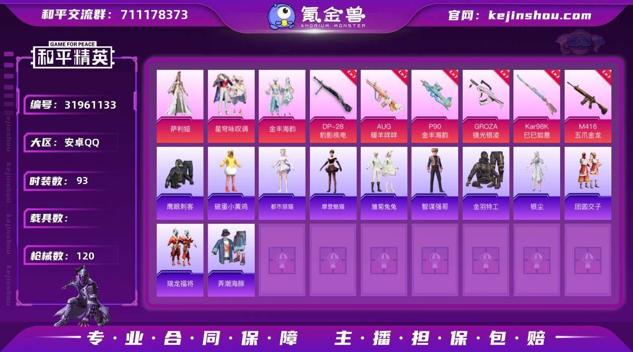 DYH17861【深海小丑鱼身法号】5王牌印记-3粉装-6特效枪-120枪皮-93套装- 【3粉装】 星穹咏叹调 金丰海韵 萨利娅 【6特效枪】 AUG-暖羊咩咩 P90-金丰海韵 GROZA-镜光银凌 DP-28-豹影疾电 Kar98K-巳巳如意 M416-五爪金龙 【3飞行器】 炫彩糖果飞行器 梦幻童话飞行器 异域银装飞行器 【20头盔】 雏菊兔兔头盔(3级) 萌鸡速递头盔(3级) 粉黛兰香头盔(3级) 金丰海韵头盔(3级) 炫彩糖果头盔(3级) 洛神天依头盔(3级) 糖糖葫芦头盔(3级) 幻影飞狐头盔(3级) 狂鲨锋刃头盔(3级) 虎虎生威头盔(3级) 香桃花海头盔(3级) 异域银装头盔(3级) 瑞龙福将头盔(3级) 燕燕于飞头盔(3级) 蝶变头盔(3级) 千金淑猫头盔(3级) 冰河战士头盔(3级) 海盐豹豹头盔(3级) 精灵梦叶罗丽头盔(3级) 纯真浪花头盔(3级) 【67背包】 蝶变背包(3级) 智谋强哥背包(3级) 巳巳如意背包(3级) 纯真浪花背包(3级) 海盐豹豹背包(1级) 神秘黑猫背包(2级) 纯真浪花背包(2级) 炫蓝之夏背包(1级) 雏菊兔兔背包(1级) 萌鸡速递背包(3级) 精灵梦叶罗丽背包(2级) 纯真浪花背包(1级) 萌鸡速递背包(2级) 萌鸡速递背包(1级) 精灵梦叶罗丽背包(1级) 瑞龙福将背包(1级) 瑞龙福将背包(2级) 龙宫之主背包(2级) 守护天翼背包(2级) 神秘黑猫背包(1级) 粉黛兰香背包(1级) 粉黛兰香背包(2级) 粉黛兰香背包(3级) 甜蜜菠萝背包(1级) 炫彩糖果背包(1级) 炫彩糖果背包(3级) 炫彩糖果背包(2级) 兔兔小魔女背包(3级) 雏菊兔兔背包(3级) 雏菊兔兔背包(2级) 金丰海韵背包(3级) 冰河战士背包(2级) 极意拳锋背包(3级) 冰河战士背包(1级) 兔兔小魔女背包(2级) 金丰海韵背包(2级) 糖糖葫芦背包(1级) 糖糖葫芦背包(2级) 金丰海韵背包(1级) 守护天翼背包(1级) 狂鲨锋刃背包(3级) 糖糖葫芦背包(3级) 狂鲨锋刃背包(1级) 巳巳如意背包(1级) 香