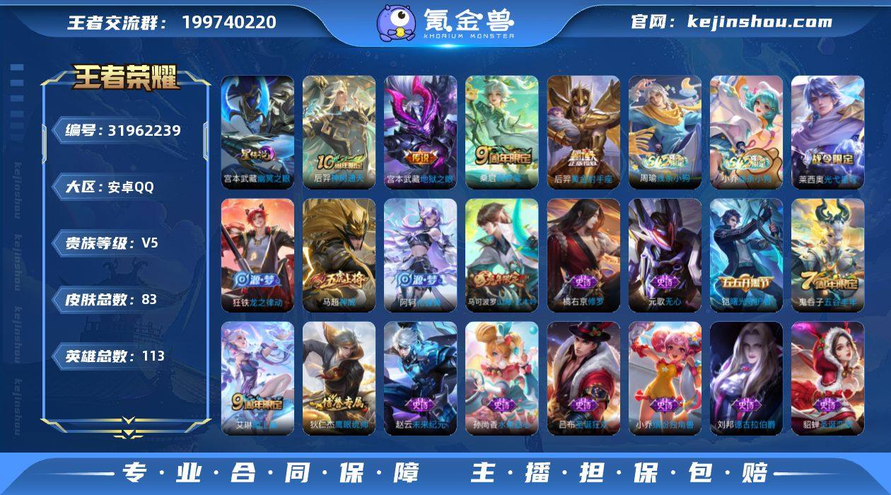 AQY649无二次-Vundefined-V5-至尊星耀III-126英雄-106皮肤-0典藏-0无双-0珍品传说-3传说-22史诗 【稀有英雄】 敖隐 不知火舞 橘右京 夏洛特 娜可露露 韩信 艾琳 赵云 【传说皮肤】 曦玄引 神树通天 鸣野蒿 【限定皮肤】 至尊宝 岱宗 【史诗皮肤】 末日机甲 百解令 雪夜绮愿 鬼剑武藏 龙之律动 拒霜思 女仆咖啡 鹰眼统帅 纤云弄巧 原初追逐者 皇家上将 至尊宝 功夫厨神 水晶猎龙者 圣诞狂欢 青焰无极 岱宗 蔷薇恋人 箭羽风息 乱世虎臣 谪仙醉月 水果甜心 【勇者皮肤】 暖冬絮语 纽约教父 龙舞盛年 丁香结 沉稳之力 黄金武士 阴阳师 次元突破 古海寻踪 功夫老勺 鲨炮海盗猫 海滩派对 完美运算 哥特玫瑰 潮玩探月行 天穹祈灯 阿尔法小队 掌控之力 忍·炎影 坚韧之力 万事如意 逐霄战戟 乓乓大师 天使之翼 雾都夜雨 兔女郎 龙腾万里 未来纪元 春野之旅 教廷特使 少女阿狸 蔚蓝守将 幻想奇妙夜 特工战影 剑破天穹 苍威无极 铁骨偃魂 熔金海岸 苍林狼骑 天穹之誓 谧流熔炉 经纬探寻者 暗都幽影 噬灭天穹 敬我三分 玫蓝誓约 景韶洛都 【其他皮肤】 前尘 潮流仙人 极冰防御线 龙域领主 灼热之刃 精灵王 魇语军师 英喵野望 午夜歌剧院 街头旋风 东海龙王 修竹墨客 剑舞者 维京掠夺者 激情绿茵 一千零一夜 西部大镖客 战争女神 孤猎 加勒比小姐 精灵公主 美梦成真 天启骑士