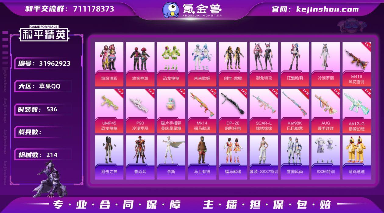 xy【66733热力值】【16王牌】【8粉装10特效枪】349物资币, 【热门】Mark.06,红熊茄茄,浪漫天命 【载具】 【粉装】缤纷油彩,放客神游,创世·救赎,未来歌姬,恐龙拽拽,御兔特攻,狂魅哈莉,冷漠罗丽 【特效枪】七级破片手榴弹-美味星星糖,七级P90-冷漠罗丽,七级UMP45-恐龙拽拽,七级M416-风花雪月,五级AUG-暖羊咩咩,五级Kar98K-巳巳如意,五级SCAR-L-锦绣绵绵,五级DP-28-豹影疾电 【背包】恐龙拽拽背包(3级),恐龙拽拽背包(2级),恐龙拽拽背包(1级) 【头盔】 【优质战备】最终圣卫者降落伞,时光之吻飞行器,时光之誓降落伞,幻星舰长飞行器,辉羽雀灵降落伞,幻海仙踪降落伞,千金淑猫降落伞,莲影清波降落伞,镜光幻境飞行翼,江南烟雨降落伞,创世·救赎降落伞,未来歌姬降落伞,恐龙拽拽降落伞,萌物绒绒飞行器,闲梦青缨降落伞 截图展示段位不代表实际段位 如赛季更新等不可抗拒因素发生变化、时限道具不保证所剩时间