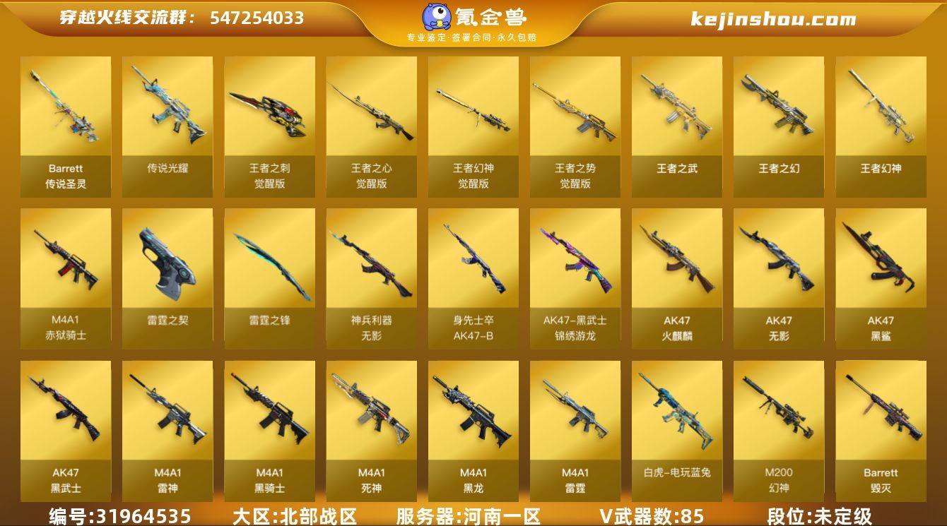 MCF843【85V 9王者 传说圣灵 传说光耀 王者之刺-觉醒版 王者之势-觉醒版 王者之武 王者幻神-觉醒版 王者之心-觉醒版 王者之幻 雷神荣耀世冠 幻神】【等级】100【区服】河南一区【英雄角色】4【英雄武器】85【传说级武器】传说圣灵 传说光耀【王者级武器】王者之刺-觉醒版 王者之势-觉醒版 王者之武 王者幻神-觉醒版 王者之心-觉醒版 王者之幻【炫金级武器】炫金武士【英雄级角色】炫 迷迭香 月兔特工 战地猎狐【英雄级武器】沙鹰-修罗 汤姆逊-烈龙 黑武士-锦绣游龙 无影-神兵利器 AK47-火麒麟 白虎-电玩蓝兔 Barrett-暗月传说 Barrett-暗月传说 Barrett-暗月传说 Barrett-暗月传说 擎天-竞技荣光 M200-竞技荣光 屠龙 AK47-B-常胜将军 AK47-B-战士 AK47-B-身先士卒 荣耀世冠-雷神 斩神刀-雷暴 高爆手雷-雷暴 烟雾弹-雷暴 闪光弹-雷暴 汤姆逊-烈龙 QBZ03-金色蔷薇 沙鹰-修罗 AWM-裁决 HK417-朱雀 AK47-黑鲨 AK-47-猩红传说 AK-47-猩红传说 AK-47-猩红传说 AK-47-猩红传说 AK47-黑武士 AK47-B-战神 AK47-B-战士 汤姆逊-烈龙 AK-47-猩红传说 M4A1-雷霆 高爆手雷-雷霆 烟雾弹-雷霆 闪光弹-雷霆 雷霆之契 高爆手雷-雷霆 烟雾弹-雷霆 闪光弹-雷霆 高爆手雷-雷霆 烟雾弹-雷霆 闪光弹-雷霆 高爆手雷-雷霆 烟雾弹-雷霆 闪光弹-雷霆 高爆手雷-雷霆 烟雾弹-雷霆 闪光弹-雷霆 雷霆之锋 高爆手雷-雷霆 烟雾弹-雷霆 闪光弹-雷霆 沙鹰-天神 沙鹰-天神 汤姆逊-烈龙 Barrett-极光 AK12-天启 Barrett-朱雀 汤姆逊-烈龙 M4A1-雷神 M200-幻神 麒麟刺 麒麟刺 M4A1-黑骑士 Barrett-毁灭 屠龙 汤姆逊-烈龙 M4A1-黑龙 擎天 沙鹰-修罗 AWM-天龙 M4A1-死神 屠龙 沙鹰-修罗 龙啸 AK47-无影 M4A1-雷神 斯泰尔 AUG A3-雪夜奇缘【源级武器】