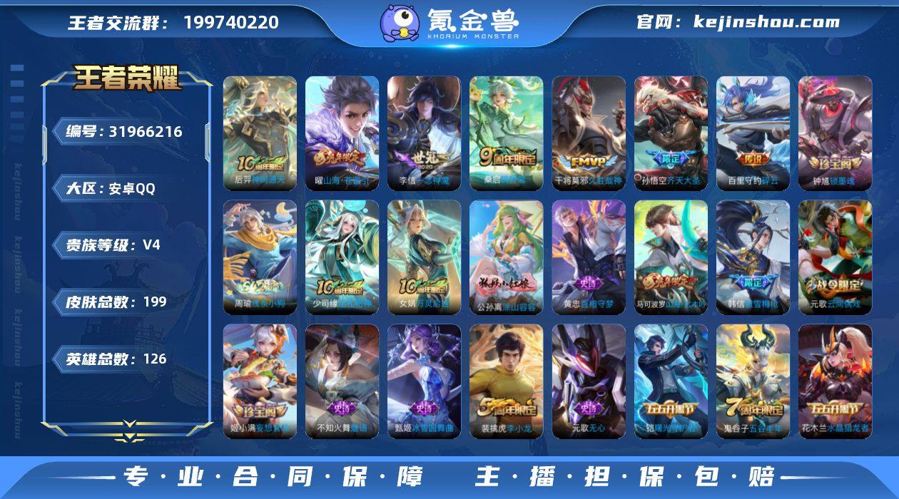 皮肤:199款 贵族:V6可恢复 王者印记:9个 信誉良好,无封禁无违规 纯个人手打号,诚心出,可小刀,骗子勿扰!