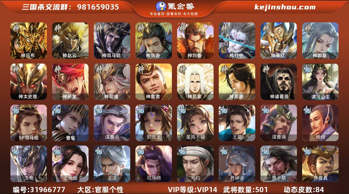 神吕布,神赵云,神司马懿,神陆逊,神刘备,神甘宁,神张辽,神郭嘉,神太史慈,神孙策,神荀彧,神诸葛亮,神鲁肃,SP司马昭,曹髦,郭女王,星周不疑,谋曹仁,王粲,谋曹操,杨修,王元姬,王凌,司马师,马钧,界钟会,界于禁,界曹真,嵇康,郝昭,陈琳,曹婴,曹纯,戏志才,刘晔,谋曹丕,清河公主,程昱,关索,谋诸葛亮,马云騄,谋黄忠,谋赵云,谋马超,诸葛瞻,周群,赵襄,张星彩,王平,沙摩柯,谯周,界黄忠,花鬘,董允,势魏延,谋陆逊,谋黄盖,周处,吴景,孙皓,孙寒华,骆统,留赞,界朱然,界徐盛,贺齐,势陆郁生,势太史慈,文鸯,谋孙尚香,十常侍,谋貂蝉,界沮授,左慈,张让,张琪瑛,星黄忠,陶谦,苏飞,司马徽,麹义,庞德公,祢衡,刘焉,沮授,界左慈,界李儒,杜预,卑弥呼,谋张角,许攸,势于吉,星董卓,兀突骨,士燮,司马昭,神吕蒙,神周瑜,SP关羽,SP曹仁,SP蔡文姬,乐进,曹昂,诸葛诞,朱灵,文聘,SP姜维,张春华,钟会,曹冲,郭淮,满宠,界王异,界曹操,界司马懿,界夏侯惇,界张辽,界许褚,界郭嘉,李典,曹真,韩浩史涣,陈群,曹叡,曹休,钟繇,司马朗,王基,李通,郭皇后,孙资刘放,辛宪英,界甄姬,吕虔,鲁芝,蒯越蒯良,界典韦,界荀彧,界徐晃,杜畿,界曹丕,毌丘俭,界邓艾,张恭,界曹植,界曹彰,界满宠,界郭淮,卞夫人,辛毗,华歆,蔡贞姬,袁涣,王双,崔琰,毛玠,杨阜,阮慧,谋徐晃,谋于禁,界曹休,牵招,胡班,成济,司马孚,谋郭嘉,谋夏侯渊,牛金,界夏侯渊,界曹仁,臧霸,唐咨,董昭,势庞羲,势陈到,SP孙尚香,关银屏,夏侯霸,马良,关兴张苞,廖化,界马岱,关平,简雍,刘封,界法正,界关兴张苞,界刘备,界关羽,界张飞,界赵云,界马超,SP徐庶,吴懿,周仓,张松,刘谌,夏侯氏,糜竺,马忠,孙乾,李严,黄皓,吴苋,秦宓,界黄月英,界诸葛...