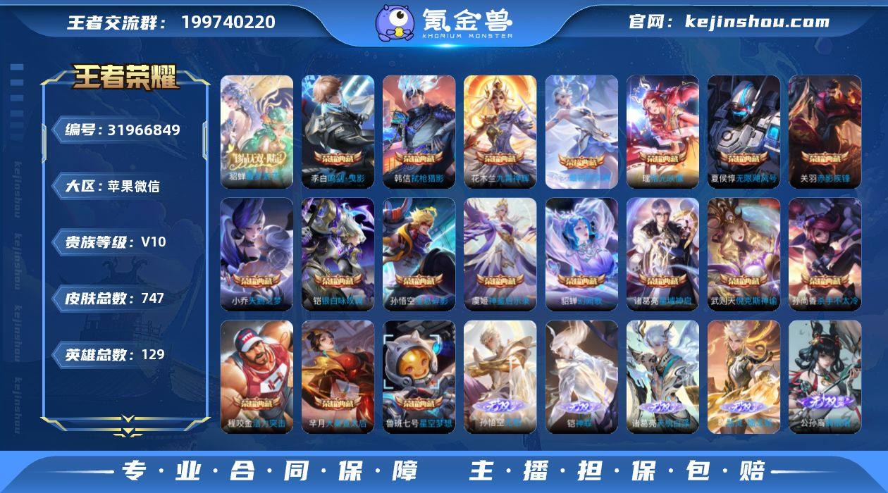 贵族等级:V10 典藏皮肤数:18 珍品无双皮肤数:1 无双皮肤数:13 珍品传说皮肤数:9 传说皮肤数:129 史诗皮肤数:262 皮肤数:747 英雄数:129 段位:星耀 卖家说:积分夺宝343,马上就能抽到水晶了
