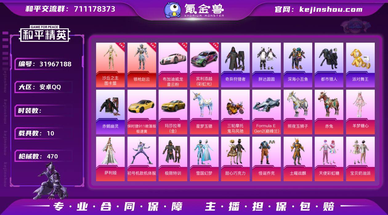 4级图卡盟 赵云 赤蝎 都市 金鞋 紫螳螂 雪国 巧克力 怪诞 极限特训 番茄 胖达 粉熊包】c24098-【无二次】【因赛季更新游戏段付以上号为准!】 安卓Q-2红装7稀有10载具31粉装22特效枪48热门361套装470枪皮 24印记 历史无敌战神 【2红装】 沙丘之主-图卡盟 (4级) 银枪赵云 (1级) 【7稀有】 奇异狩猎者 赤蝎幽灵 AWM-黄金龙骨 AKM-缤纷海域 都市猎人 派对舞王 派对舞王(金靴子) 【10载具】 布加迪威龙(星云粉) (3级) 宾利添越(彩虹光) (3级) 玛莎拉蒂金色 保时捷Taycan旅行版(冰莓粉) 保时捷911敞篷版(极速黄) Formula(巅峰兰) 照夜玉狮子 赤兔 星梦玉骢 鬼马风驰 【31粉装】 紫螳螂 圣堂之誓 雪国幻梦 萨利娅 茉莉星 宝贝奶油派 天使彩虹糖 甜心巧克力 烟云彩露 土曜战麒 怪诞乔克 羊梦糖心 闲梦青缨 青空秋雨 橘柚倾心 数码大师 极限特训 幻彩马卡龙 冰川幽秘 鸾凤武仙 香水柠檬 苍蓝魅影 翡翠骑士 绚金战神 童趣迷兔 冰霜白皇 炙焰红王 王牌四分卫 烈焰拳霸 冰川红玫 旋转彩虹 【22特效枪】 M416-五爪金龙 (6级) SCAR-L-纯梦嫁纱 (7级) M416-心之恋语 (7级) M416-超新星 (3级) P90-沙丘之主 (3级) AKM-甜心宝贝 (7级) AKS-74U-森灵之息 (5级) Kar98K-巳巳如意 (5级) DP-28-千金淑猫 (5级) DP-28-豹影疾电 (5级) PKM-江南烟雨 (5级) 蜜獾-辉耀战甲 (5级) M338-回旋牧梦使 (2级) Mk14-樱桃泡泡 (4级) M762-激战未来 (7级) AUG-星之彼岸 (6级) Kar98K-绿意幻情 (5级) 汤姆逊-怪笑疯兔 (5级) M417-第五大道 (4级) GROZA-旋转彩虹 (5级) UMP45-恐龙拽拽 (5级) SCAR-L-青春物语 (1级) 【48热门】 小丑鱼 龟仙人 红熊茄茄 幸运萌趣趣 雪山精英 梦魇先生 呆萌铁蟹