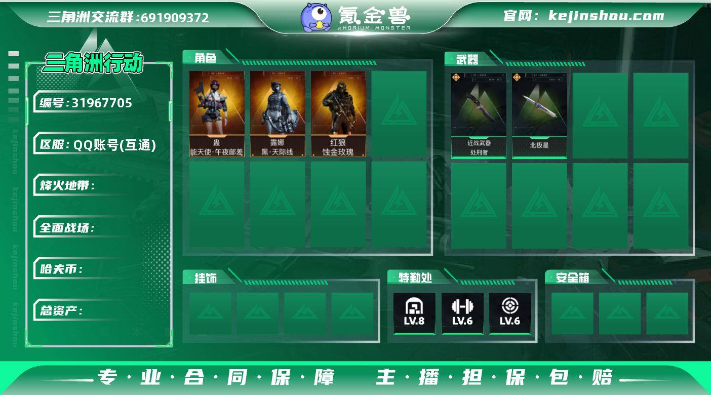 【北极星处刑者刀皮黑狼女医露娜红皮】【201m总资产9格保险s1094】