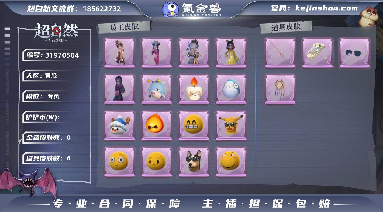 红色皮肤数量:0 金色皮肤数量:0 紫色皮肤数量:5 道具皮肤数量:6