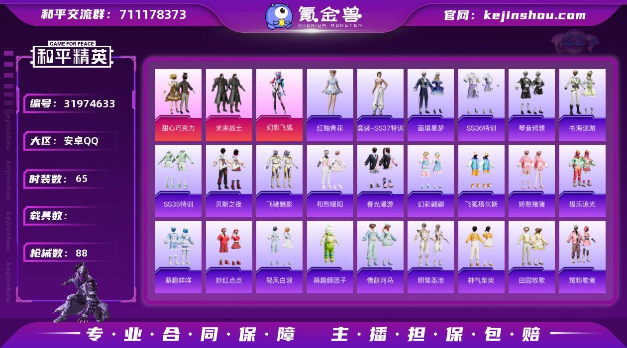 【和平精英】3粉装,4特效枪,0载具,历史最高段位:卓越王牌8星 王牌印记11次 热力值:59440,156套装,207枪械,242装备,122战备;套装:套装-未来战士,套装-甜心巧克力,套装-幻影飞狐,套装-特训学院,套装-白色伏地魔,套装-黑色伏地魔,套装-骑行爱好者,套装-登山爱好者,套装-竞技名士,套装-长空猛禽,套装-漫步者,套装-黎明保卫者,套装-海岛探路者,套装-雨林探路者,套装-旭日情侣,套装-冷焰舞者,套装-灼焰舞者,套装-特战装甲,套装-战地菁英,套装-战地督导,套装-特殊使命,套装-燃烧卡路里,套装-滨海假日,套装-沙漠毒蛇,套装-鹰眼刺客,套装-冰冻风暴,套装-街头潮人,套装-红潮炫舞,套装-蓝彩潮人,套装-怒火燎原,套装-魅力单车,套装-绮丽涂鸦,套装-耀眼新星,套装-竞技达人朋克,套装-都市漫游者,套装-野性战心,套装-破晓战魂,套装-都市魅力,套装-荣耀,套装-潮流炫酷,套装-沙漠兵团,套装-极地朋克,套装-幻世战舞者,套装-甜蜜菠萝,套装-清新柠檬,套装-缤纷果语,套装-滨海厨神,套装-Alan Walker,套装-龙魂突击队,套装-冰川特警,套装-元素星魂,套装-极速红龙,套装-麻辣教官,套装-破蛋小黄鸡,套装-霓虹街区,套装-萌黄之夏,套装-夏日音浪,套装-牛气满满,套装-白糯汤圆,套装-萌趣颜团子,套装-特种颜团子,套装-战术大师,套装-狙击之神,套装-牛气冲天,套装-耀粉歌者,套装-飞行日记,套装-热情海星,套装-纯真浪花,套装-吉莉礼服,套装-SS15特训,套装-星兔领航员,套装-SS17特训,套装-极乐追光,套装-福星高照,套装-SS19特训,套装-飞驰魅影,套装-音速流光,套装-炫蓝之夏,套装-SS20特训,套装-SS21特训,套装-萌趣咩咩,套装-娇憨猪猪,套装-玉兔迎春,套装-SS22特训,套装-和煦暖阳,套装-田园牧歌,套装-轻风白浪,套装-光之冒险,套装-绯格组合,套...