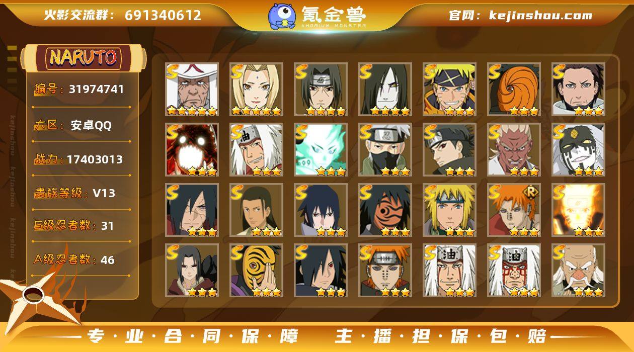 实名:不可二次实名 贵族等级:V13 战力值:17403013 S忍数:31 A忍数:46 五星猿飞日斩,五星纲手,四星宇智波鼬「须佐能乎」,四星大蛇丸,三星漩涡鸣人·宇智波佐助,三星宇智波斑「五影会谈」,三星烈斗「初代目风影」,三星漩涡鸣人「暴怒·第六尾」,三星自来也「传说中的三忍」,三星大筒木舍人「最终章」,三星旗木卡卡西「须佐能乎」,三星宇智波止水「须佐能乎」,三星艾「忍界大战」,三星大筒木桃式,三星宇智波斑「秽土转生·解」,三星千手柱间·木叶创立,三星宇智波佐助「永恒万花筒」,三星神秘面具男「红夜之刃」,三星波风水门,三星佩恩·天道「超」,三星漩涡鸣人「九喇嘛连结」,三星宇智波鼬「秽土转生」,三星神秘面具男,三星宇智波斑「木叶创立」,三星佩恩「天道」,三星自来也,三星自来也「仙人模式」,三星大野木「忍界大战」,三星春野樱「忍界大战」,三星大筒木金式「博人传」,三星自来也「舞之豪杰」 五星蝎,五星干柿鬼鲛,五星猿飞阿斯玛,五星迈特凯,四星飞段「死司凭血」,四星我爱罗「疾风传」,三星土台「忍界大战」,三星蝎「绯流琥」,三星飞段,二星小南「神驹佑将」,二星迈特凯「青春爆炸」,二星巳月「仙人模式」,二星大野木「侠隐江湖」,二星机械鸣人「初始形态」,二星桃地再不斩「秽土转生」,二星神农「羁绊」,二星宇智波带土「漂泊浪客」,二星宇智波泉奈,二星不动,二星角都「秽土转生」,二星李洛克「忍界大战」,二星漩涡博人「桃式显现」,二星小南「漂泊浪客」,二星日向宁次·忍界大战,二星长十郎「六代目水影」,二星长门「青年」,二星佩恩·六道「漂泊浪客」,二星艾「青年」,二星达鲁伊「五代目雷影」,二星波风水门「青年」,二星千手扉间「漂泊武士」,二星宇智波止水「新春限定」,二星黑土「博人传」,二星宇智波佐助「须佐能乎」,二星桃地再不斩「漂泊武士」,二星宇智波带土「暴怒」,二星千代「近松十人卫」,二星药师兜「半蛇斗篷」,二星宇智波鼬「新春限定」,二星秋道丁次「忍界大战」,二星大蛇丸「晓」,二星波风水门「新春限定」,二星照美冥「五代目水影」,二星小南,二星迪达拉,二星宇智波鼬 卖家说:1740万战力,在一组,无70片,九喇嘛水门91片,十尾带士63片,三代57片,三代风影44片,有2万金币
