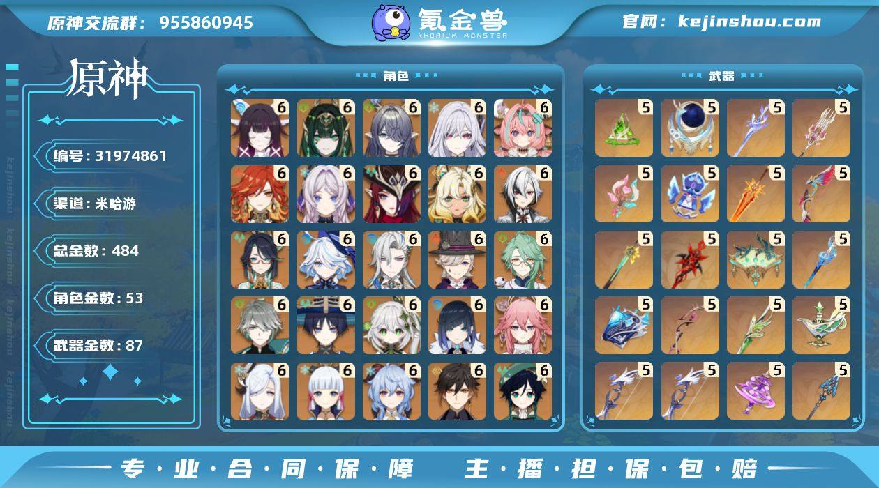 满命少女顶配月体系,满命角色圣遗物250分大毕业。开服玩家,累积氪金50万,逢年过节米哈游必送周边礼品堆了一仓库。诚信卖,大额交易找回等于牢底坐穿请放心。新开公司没空玩儿了,看哪个幸运儿捡大便宜。仔细看,和同价位差距很大,唯一性强。幽境危战N6 凹50秒内。随心打90秒内。大地图还有几个国家区域有罗盘没探索,买回去可玩性非常高,可以持续一年不氪金也可以轻松过任何深渊。试过了,所有深渊、幻想、幽境不用纳塔诺德角色都可以轻松过拿满奖励。