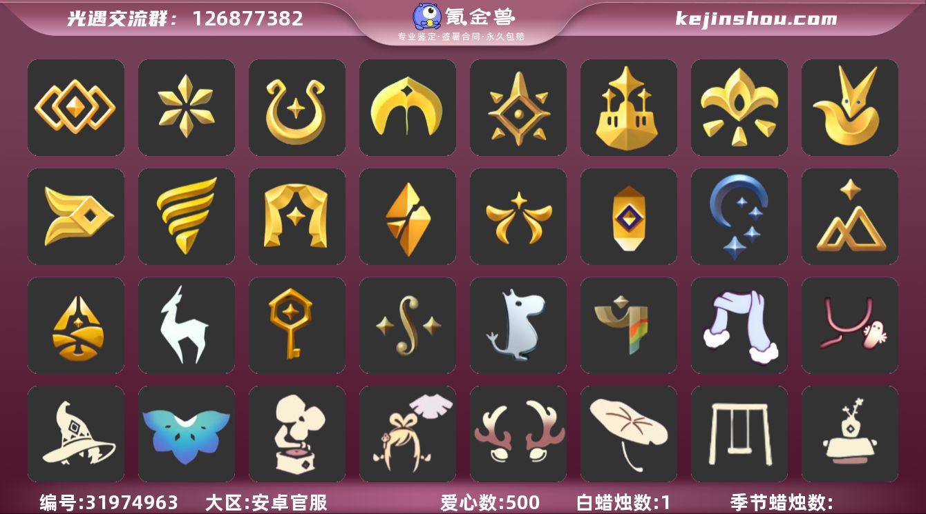 账号类型: 手机账号 季节已毕业: 音韵季,魔法季,圣岛季,预言季,梦想季,小王子季,风行季,潜海季,表演季,破晓季,欧若拉季,集结季,夜行季,追忆季,拾光季,归巢季,九色鹿季,筑巢季,二重奏季,姆明季,彩染季,青鸟季,双星季 完成地图: 晨岛,云野,雨林,霞谷,暮土,禁阁,全图毕业 珍稀物品: 阿努比斯(狗头),白枭,透明蝶翼斗,白鸟头,魔法季耳坠,玫瑰花 礼包: 蝙蝠套,巫师,围巾,星球斗,小狐狸,欧若拉之翼,九色鹿角,莲花斗,音乐桌,大耳狗服饰,绊爱,大铁头,鹿角,荷叶伞,蜘蛛斗,牛仔裤,兔子鞋,肯德基联动,运动鞋,秋千,茶桌,茶壶,餐桌,白绒金,瑞雪,女巫裙,福娃,跷跷板,小船,吉他,灯笼,风之旅人,奔跑裤子,致爱装扮,人声乐器,奔跑发型,鲤鱼套,彩虹帽,雪花球,绒帽,橘子,粽叶,贝壳,黄伞,红伞,兔子,南瓜,枯角,雪花,鲤鱼,竖琴,电吉他,tgc,水母,猫套,猫背饰,星月头饰,彩虹耳钉,彩虹耳机,雪怪斗,球赛门,新年裤,蝴蝶结,魔法棒,奥利奥,海螺,四叶草,暗彩装扮,向日葵套,小提琴,拖鞋,滑板,爱心眼镜,火焰眼镜,伯爵斗篷,透明蛛丝,伯爵面具,飞蛾套,文雀套,雪人鞋,夹袄斗,新年耳钉,龙纹斗,浪漫流星斗,创始人,海蓝波浪发型,飞鸟纸伞,彩虹泡泡机,日光耳环,遥鲲披肩斗篷,满月耳坠,月华套装,锦标赛短袍,锦标赛桂冠,优雅三件套,姆明饰品套装,史力奇套装,史力奇帽子,树精肩饰,恶作剧飞行扫帚,恶作剧鸦羽斗篷,向日葵连衣裙,蛛网朋克,龙鳞束身长袍,仙境茶会门扉礼包,爱丽丝围裙套装礼包,进行曲制服,妮妮斗篷,海龟斗篷,园丁装扮,衔福献瑞礼包,献瑞折扇礼包,渐变双马尾发型礼包,心心相印发饰礼包,小狗周年发饰,篝火点心礼包,奉献斗篷,立式钢琴礼包,宝藏猎人礼包,风之旅人白袍,潮汐套装礼包,粽子发饰礼包,必胜客联动装扮礼包,必胜客联动分享披萨背饰礼包,青衫落拓礼包,周年影院套餐礼包,线框斗篷礼包,缤纷飘带斗篷礼包,小黄鸭雨衣套装礼包,小黄鸭发饰礼包,海牛...