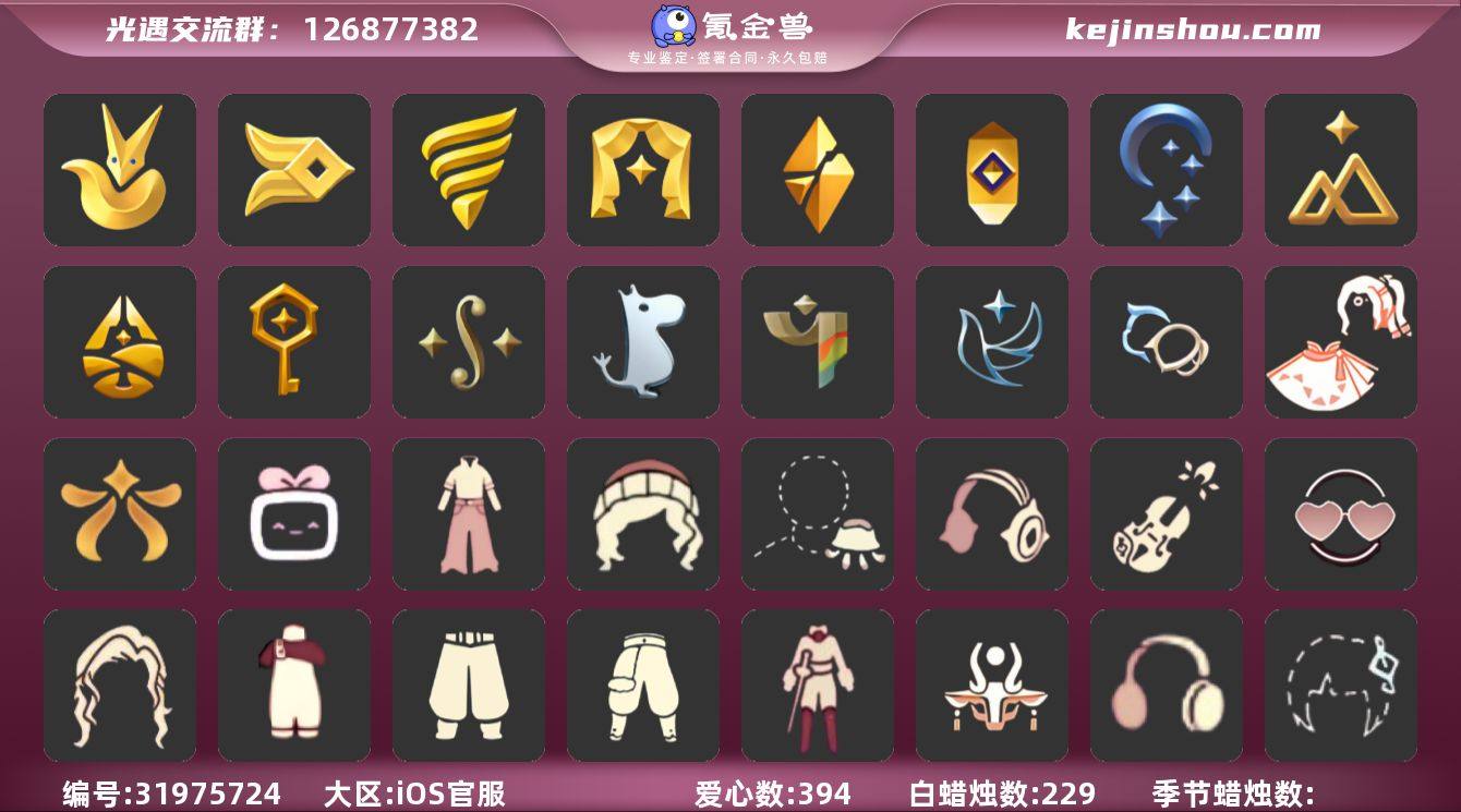 13季11翼透明蝶翼白枭武士裤海洋武士裤搓澡巾樱花头鲲灯详情看图价格可刀 资源:蜡烛 17 爱心 36 红烛11 翼11 已毕业地图:晨岛 云野 雨林 霞谷 墓土 毕业季节: 表演季 破晓季 欧若拉季 追忆季 夜行季 拾光季 归巢季 九色鹿季 筑巢季 二重奏季 姆明季 彩染季 青鸟季 毕业季节物品: 燕尾斗篷 黄眉企鹅面具 白枭发型 双翼遥鲲斗篷 冥龙斗篷 留辨蘑菇头 高领舞服 透明蝶翼斗 肩带 追忆之书 棕熊面具 绒毛斗篷 粗框眼镜 季卡相机 西部帽 九色鹿丸子头 九色鹿丝带裤 九色鹿飞天斗篷 设计师长袍 光之子试衣 合奏挂画 蓝色燕尾服 白色高脚钢琴 姆明抱枕 姆明大伞 姆明长裙 彩染围巾斗篷 辉光羚羊面具 青鸟面饰 青鸟斗篷 稀有礼包:大桔大利 热门裤子:背带裤 遥鲲长袍 绑带舞服 奔月长袍 妮妮长裙 海洋武士裤 白棉裤 搓澡巾 紧身连体衣 武士裤 小丑服 女仆围裙 美工衣 红色流珠裙 米色西装裤 热门面具:矮人面具 狐狸面具 黄鼠狼面具 黄眉面具 一字眉 棕熊面具 盲僧眼罩 向导面具 青鸟面具 龙头 玫瑰花面具 玫瑰面具 黑脸 鸟羽面具 热门发型:海藻头 爆炸头 大胡子 小飞象 雨妈 卡卡 平菇 箬笠 蝴蝶结 公主头 粗辫 水母头 书虫 总裁头 正太头 高马尾 斗笠 绿丝带 虚荣 白枭 圆环发辫 留辫蘑菇头 李逍遥发型 彩色脏辫 彩羽发型 兔子头 双辫发型 樱花头 马蹄莲发型 遥鲲发型 猫猫头 圣诞帽 光头 热门头饰:尖角牛仔帽 牛仔帽 飞羽发饰 大桔大利 花环 珊瑚发饰 蓝色音乐会 红耳机 探险耳机 热门斗篷:花瓣斗篷 白金斗篷 汉服斗篷 燕尾斗篷 暗花斗篷 冥龙斗篷 遥鲲长斗 展翼圆环斗 透明蝶翼 小浣熊斗篷 毛绒斗 布丁斗篷 布条斗篷 彩霞斗篷 国...