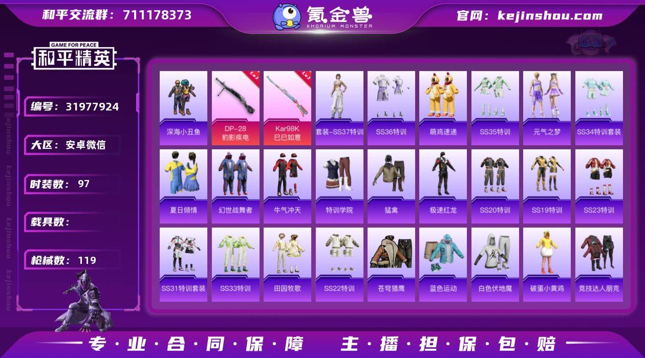 【小丑鱼4特效枪 V社交 游戏正常】 安卓V区-29955热力值-6印记-97套装-119枪皮 【4特效枪】 Mk14-福马献瑞(5级) UMP45-萌骑冒险(2级) Kar98K-巳巳如意(5级) DP-28-豹影疾电(5级)【103热门】 破蛋小黄鸡 小丑鱼 极速红龙 白色伏地魔 SS27特训 SS25特训 SS24特训 SS23特训 SS22特训 SCAR-L-玉兔迎春 GROZA-田园牧歌 M762-天降萌叽 Mk47-乌木金纹 UMP45-蓝色火焰 UMP45-炫光之旅 M249-彩虹符号 MG3-幻世战舞者 M416-蓝色火焰 长空猛禽 夏日倾情 特训学院 牛气冲天 魅力单车 猎鹰 蓝色运动 竞技达人朋克 黄色运动 红色运动 黑色伏地魔 S1897-糯团青竹 GROZA-紫矿核心 GROZA-福马献瑞 SS34特训 星影赞美诗 AWM-天降萌叽 福马献瑞 SS19特训 SS20特训 SS21特训 龙魂突击队 SS29特训 SS28特训 海盐绵绵冰 SS31特训 SS33特训 SS32特训 巳巳如意 SS36特训 老实芭蕉 Vector-突变脉冲 智谋强哥 战术大师 蜜獾-启元战纹 马上有钱 AKM-极光猎影 狙击之神 M416-糯团青竹 破片手榴弹-海盐豹豹 UMP45-海盐豹豹 Mk14-紫晶流影 撬棍-幻世战舞者 Mk14-薄荷星砂 平底锅-光之冒险 AUG-紫晶流影 MG3-乌木金纹 Mk14-冰河战士 GROZA-海盐豹豹 破片手榴弹-巳巳如意 SCAR-L-星途旅人 AKM-涂鸦街区 UMP45-绒宝小鹅 UZI-冰河战士 平底锅-精灵梦叶罗丽 SS35特训 粉日山川 蝶变 元气之梦 街头风暴 S12K-霓彩脉冲 VSS-香桃花海 AKM-霓彩脉冲 AUG-异域银装 破片手榴弹-拽到爆炸 Famas-霓彩脉冲 SVD-霓彩脉冲 铝热弹-炫彩糖果 UZI-炫彩糖果 P90-玩趣呆呆 AUG-冰晶雪宝 Mini14-鸡智如我 沙漠之鹰-快闪甜心 平底锅-田园牧歌 P90-巳巳如意 平底锅-快闪甜心 S686-巳巳如意 平底锅-惊鸿侠