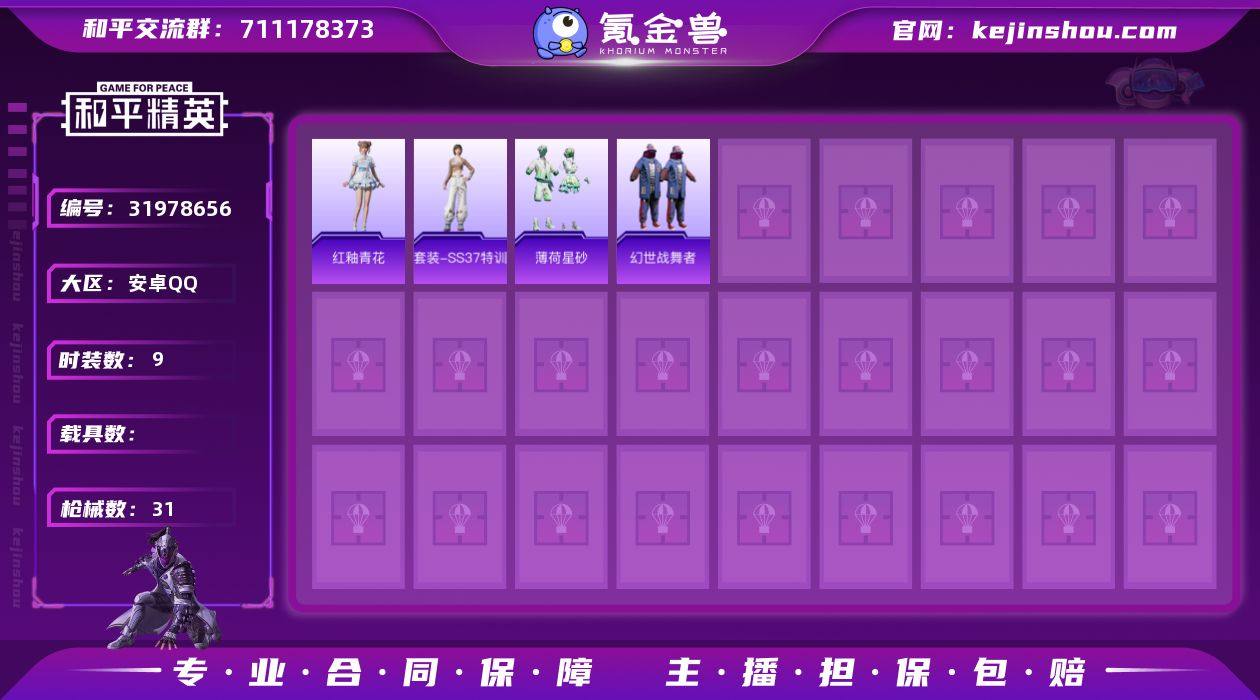 【6特效枪练手小号 秒换绑不用等】 安卓Q区-6848热力值--9套装-31枪皮 【6特效枪】 Mk14-福马献瑞(5级) AA12-G-萌骑幻想(1级) UMP45-萌骑冒险(2级) PKM-萌骑夺宝(1级) ACE32-萌骑漫游(2级) MG-36-虹云熊熊(3级)【26热门】 MG3-幻世战舞者 AA12-G-雨过天青 沙漠之鹰-雨过天青 M16A4-雨过天青 Vector-荒原烈焰 雨过天青 MG-36-薄荷星砂 GROZA-福马献瑞 福马献瑞 M200-罪夜之冕 ACE32-冰晶雪宝 蝎式手枪-虹云熊熊 魂电 蜜獾-启元战纹 马上有钱 Mk47-虹云熊熊 狙击之神 M417-虹云熊熊 M416-小财神当家 小财神当家 破片手榴弹-小财神当家 平底锅-小财神当家 SS37特训 AMR-雨过天青 PKM-雨过天青 红釉青花【1飞行器】 炫彩糖果飞行器【2背包】 甜蜜菠萝背包(3级) 炫彩糖果背包(3级) 营地ID:1039413027