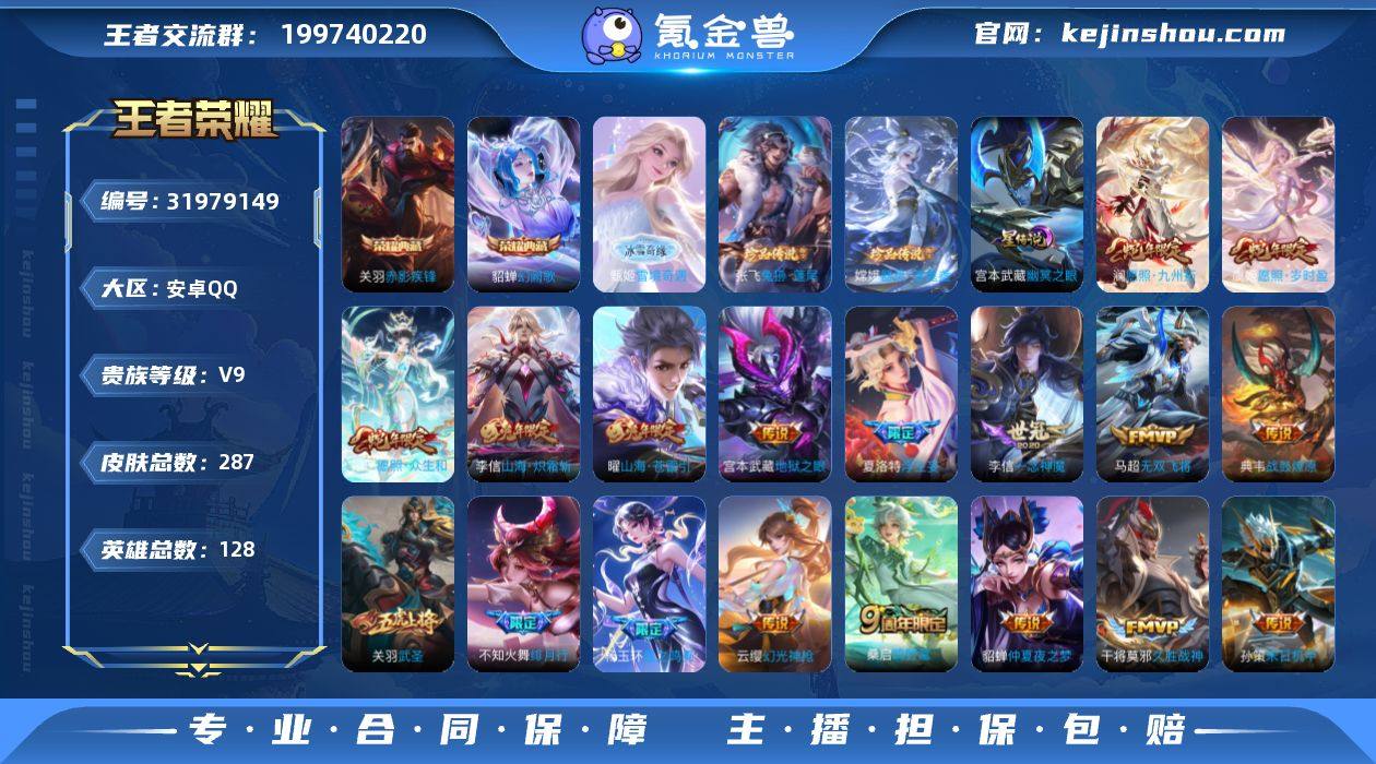 0AMIHV 无二次无双1水晶2珍品传说2传说33优质限定35 钱包无法注销、信用分正常、无设备脸 李信全皮, 水晶皮肤:赤影疾锋,幻阙歌, 无双皮肤:雪境奇遇-甄姬, 珍品传说皮肤:器灵·落星盏,兔狲·蓬尾, 新传说限定:愿照·九州拓,愿照·众生和,玄雷天君,愿照·岁时盈, 传说限定:武圣,山海·炽霜斩,浮生妄,琥珀纪元铠,电玩·雷克斯,至美·化雀舞,绯月行,画中仙,鲁班七号-时之奇旅,燃星之曲,零号·赤焰,山海·苍雷引,启明星使, 新传说皮肤:幻光神枪, 传说皮肤:怒海麟威,一念神魔,典韦战鼓燎原,乞巧织情,灼幽烈阳,末日机甲-孙策,无双飞将,淬星耀世,地狱之眼,惊梅引,时之恋人-刘备,仲夏夜之梦,久胜战神,超时空战士-狄仁杰,鸣野蒿, 新史诗限定:布丁狗之誓,器灵·浮梦炉,星之鸣奏, 史诗限定:御风骁将,冰锋战神,神威,引擎之心,龙胆,岱宗,孙行者,乒乒小将,山海·玄木吟,烈魂,琥珀纪元伽罗,虎魄,山海·碧波行,匿光决锋者,匿光侦查者, 新史诗皮肤:戍鼓铭心,糖绘人间,绮世丹青,百相守梦-黄忠, 优质史诗皮肤:永昼,修罗,青蛇,魅语,时之恋人-孙尚香,真我赫兹(百里守约), 周年皮肤:李小龙,江河有灵,梁祝,高山流水,五谷丰年, 珍宝阁:优雅恋人,玩趣恶龙, 史诗皮肤:地狱岩魂,圣诞狂欢,末日机甲-吕布,无心,乘风破浪,幽灵船长,功夫厨神,德古拉伯爵,水晶猎龙者,心灵战警,猫狗日记-孙策,未来纪元-赵云,暗夜猫娘,节奏热浪,鬼剑武藏,白龙吟,暗隐猎兽者,曙光守护者,纤云弄巧,缤纷独角兽,金属风暴,魅力维加斯,女仆咖啡,摇滚巨星,冰雪圆舞曲,圣诞恋歌,心灵骇客,偶像歌手,拒霜思,水果甜心,电玩小子,鹰眼统帅,逐浪之夏,特工魅影,箭羽风息,绅士熊喵,天才门将,乱世虎臣,乐园奇幻夜,舞动绿茵,猫狗日记-大乔