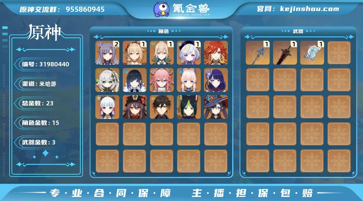【YS1265】57级/23黄/女主/15个五星角色/3个五星武器/胡桃/夜兰/钟离/雷电将军/一命宵宫/神里绫华/二命刻晴/一命琴/八重神子/珊瑚宫心海/一命七七/纳西妲/提纳里/玛薇卡/莫娜/狼的末路/四风原典/息灾