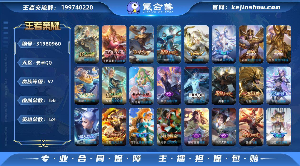 【W5849】【2.7低场次打野号】营地ID:2124553616【爆款臻稀皮肤:李逍遥-默契交锋-神威-岱宗-飞衡-炽阳神光】安卓q-可二次-贵7-124英雄-156皮肤-8传说-55限定-2按键-贵族积分2.9w