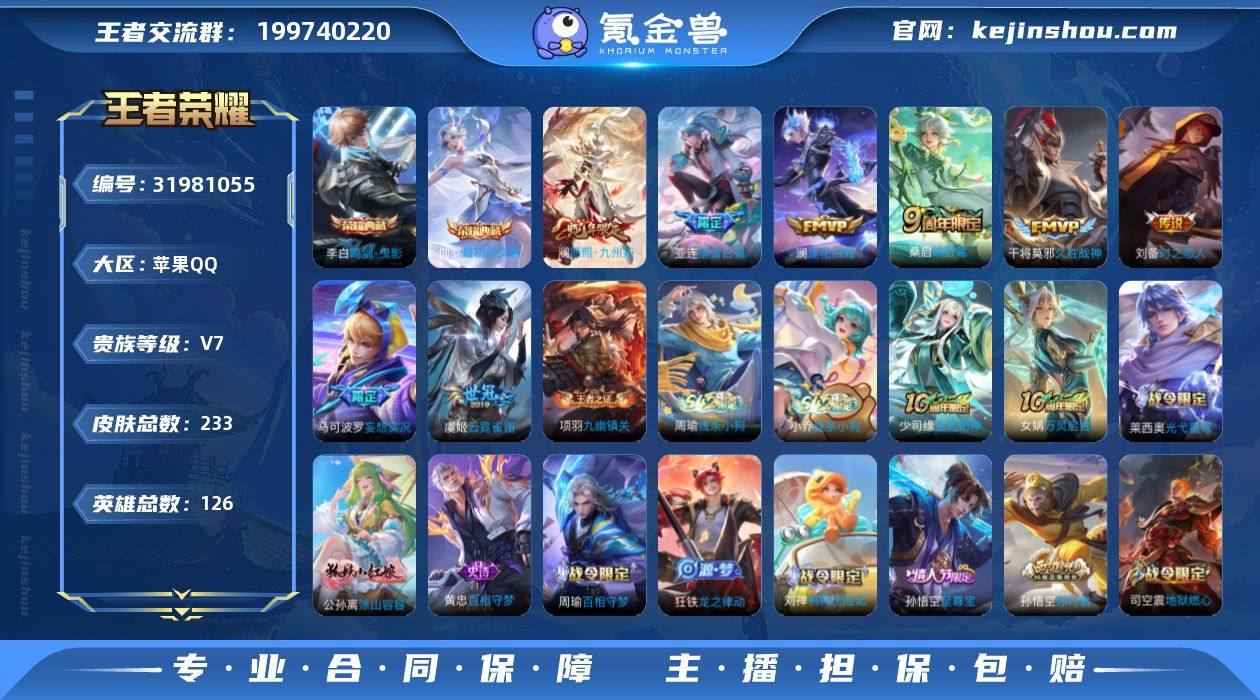 贵族7/皮肤233/典藏2/传说9/史诗67/英雄126/孙权全皮/影全皮/鸣剑·曳影/最初的交响/时之恋人-刘备/狄仁杰神骥赴朔漠/愿照·九州拓/鸣野蒿/落雪白狼/澜逐花归海/妄想实况/久胜战神/云霓雀翎/虞姬夏日便利店/天穹之誓(s36)/阴阳师/皇家上将/白晶晶/云间偶戏/魔术师/海滩派对/至尊宝/孙行者/银河之约/遇见飞天/原初追遂者/纤云弄巧/时之祈愿-云中君/拒霜思/玲珑珍味/探海日志(s32)/女武神/流音漫舞/地狱燃心/江河有灵/古海寻踪(s33)/百解令(蒙犽)/高渐离燃音魔法/妲己灵卜魔法/鬼谷子天穹祈灯(S34)/琥珀纪元伽罗/妄想食味/龙武盛年/蔬乡物语(鲁班七号)/蔬乡物语(李元芳)/剑破天穹(s35)/程咬金群星魔术团/青焰无极/苍威无极/刘备异域游侠/熔金海岸/噬灭天穹(s37)/谧流熔炉/虚灵犬护/逆浪荇歌/荣光之誓/星界战将/九幽镇关/破空之剑/神迹守卫/茶境仙/访茗客/鸭鸭历险记-刘禅/鸭鸭历险记-沈梦溪/百相守梦-周瑜/百相守梦-孙策/光弋星穹/往忆晖光/线条小狗-周瑜/线条小狗-小乔/巫礼祀神/万灵启世/涂山容容/百相守梦-黄忠/龙之律动/化蝶舞/陌上桑/怒海争锋/真我赫兹(百里守约)/天秀·启明/诗语江南/时之恋人-孙尚香/修罗/鹰眼统帅/猫狗日记-孙策/逐浪之夏/天才门将/舞动绿茵/曙光守护者/特工魅影/心灵骇客/冰冠公主/心灵战警/暗隐猎兽者/缤纷独角兽/千年之狐/幽灵船长/圣诞狂欢/金属风暴/魅力维加斯/暗夜贵公子/水果甜心/鬼剑武藏/偶像歌手/冰雪圆舞曲/圣诞恋歌/未来纪元-赵云/暗夜猫娘/紫霞仙子/兰陵王雾影缉谜/班班快跑/溯影追猎/极光幻客/逐霄之志/鹤鸣心笺/径山谋武/罗小黑战记/克喵/踏浪烽翎/锦麟游梦/死霸装/小满鸭/命运加冕/布丁狗之约/灵野札记/秘证寻踪/春野闲踪/浪漫序章/玫蓝誓约/灵卦秘语/星梦巡礼/雪境奇遇-西施/魅影绮裳/铁骨偃魂/苍林狼骑/雾都夜雨/敬我三分/暗都幽影/春野之旅/朵莉亚金色潮汐/漠中幻影/时空谍...