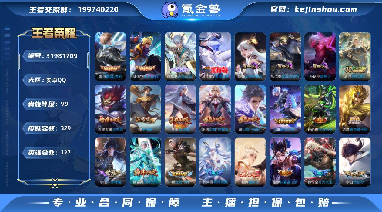 贵族9/皮肤329/典藏2/传说22/史诗101/英雄127/孙权全皮/鬼谷子全皮/空空儿全皮/全息碎影/鸣剑·曳影/天机白泽/金色仲夏夜/幽冥火/星际治安官/怪盗基德/神树通天/貂蝉曦玄引/澜逐花归海/燃星之曲/齐天大圣/山海·苍雷引/山海·炽霜斩/诗剑行/异界灵契/李逍遥/时雨天司/启明星使/云鹰飞将/一念神魔/时之恋人-刘备/黄金狮子座/白虎志/仲夏夜之梦/凤求凰/末日机甲-孙尚香/地狱火/超时空战士-狄仁杰/阴阳师/皇家上将/龙胆/神迹守卫-墨子/优雅恋人/白昼王子/狮舞东方/高山流水/玩趣恶龙/迷踪丽影/重明(s11)/猎兽之王/真爱至上/赤莲之焰/云间偶戏/朔风刀(s17)/游园惊梦/烛龙(s10)/穷奇(s12)/蓝屏警告/暗影游猎/山海·玄木吟/魔术师/万华元夜(s22)/星际陆战队-达摩/沙漠行僧(s26)/海滩派对/霸王别姬-项羽/醍醐杖(s20)/航海奇遇记/冰锋战神/演武夺筹(s23)/夺宝奇兵/逐梦之影/飞衡/傲雪梅枪/驯魔猎人/金庭之子(s27)/潮玩骑士王/美猴王/至尊宝/大圣娶亲/御旌(s15)/辉光之辰/如梦令-后羿/云中旅人(s29)/神迹守卫-钟馗/驱傩正仪(s24)/朔望之晖/冰霜恋舞曲/黎明之约/繁星吟游/逐梦之光/原初探秘者(s21)/五谷丰年/青龙志/千军破阵(s25)/原初追遂者/混沌棋(s18)/顽趣-梦奇/大漠名商(s28)/疑决卦(s19)/天狼狩猎者/李小龙/擒涛扼浪(s31)/御狮(s13)/御霄(s14)/胡桃异想国/山海·碧波行/纤云弄巧/御銮(s16)/西部大镖客-猪八戒/梁祝/天狼绘梦者/拒霜思/探海日志(s32)/匿光追影者/海盐诗旅(s30)/古海寻踪(s33)/蒙恬荣光圣徽/鬼谷子天穹祈灯(S34)/乘龙·聚宝船/龙武盛年/剑破天穹(s35)/程咬金群星魔术团/熔金海岸/噬灭天穹(s37)/谧流熔炉/虚灵犬护/逆浪荇歌/荣光之誓/星界战将/九幽镇关/线条小狗-周瑜/涂山容容/织梦人/百相守梦-黄忠/灵蛊蚀心/龙之律动/化蝶舞/万物之道/电玩·爆裂旋风/暗渊魔法/时之恋人-孙尚香/神威/修罗/晚萤/无限星赏官/鹰眼...