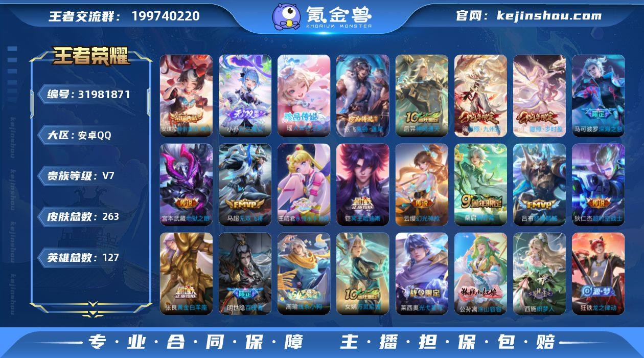 女生号-无二次-安卓Q-V7-最强王者段位-127英雄-263皮肤-1典藏皮肤-1无双-2珍品传说-13传说-70史诗HZ2632010 【荣耀典藏】:安琪拉颠倒童话魔镜 【无双皮肤】:小乔时之魔女 【珍品传说】:瑶大耳狗之梦,张飞兔狲蓬尾 【传说皮肤】:后羿神树通天,澜愿照九州拓,虞姬愿照岁时盈,云缨幻光神枪,桑启鸣野蒿,铠冥王哈迪斯,王昭君永恒水手月亮,吕布怒海麟威,马可波罗深海之息,马超无双飞将,张良黄金白羊座,宫本武藏地狱之眼,狄仁杰超时空战士 【限定皮肤】:铠冥王哈迪斯,蔡文姬夏日便利店,虞姬夏日便利店,姜子牙天穹之誓,杨戬破阵退雄兵,狄仁杰阴阳师,赵云皇家上将,孙尚香蔷薇恋人,白起夜都怪侠,元歌云间偶戏,夏侯惇朔风刀,典韦穷奇,典韦岱宗,马可波罗深海之息,狄仁杰魔术师,狄仁杰万华元夜,达摩星际陆战队,达摩沙漠行僧,项羽海滩派对,老夫子醍醐杖,安琪拉魔法小厨娘,程咬金演武夺筹,韩信傲雪梅枪,兰陵王金庭之子,亚瑟潮玩骑士王,牛魔御旌,李元芳云中旅人,钟馗驱傩正仪,干将莫邪胡桃夹子,雅典娜黎明之约,鬼谷子原初探秘者,鬼谷子五谷丰年,苏烈千军破阵,弈星混沌棋,沈梦溪大漠名商,明世隐疑决卦,裴擒虎李小龙,裴擒虎擒涛扼浪,狂铁御狮,米莱狄御霄,米莱狄胡桃异想国,云中君纤云弄巧,盾山御銮,上官婉儿梁祝,嫦娥拒霜思,嫦娥暖冬兔眠,鲁班大师探海日志,桑启海盐诗旅,暃星界游侠,艾琳女武神,艾琳流音漫舞,司空震地狱燃心,阿古朵江河有灵,张良古海寻踪,王昭君永恒水手月亮,蒙犽百解令,蒙恬荣光圣徽,鬼谷子天穹祈灯,小乔时之魔女,沈梦溪龙舞盛年,鲁班七号蔬乡物语,李元芳蔬乡物语,刘邦剑破天穹,程咬金群星魔术团,镜青焰无极,项羽苍威无极,周瑜熔金海岸 【年限皮肤】:典韦岱宗,澜愿照九州拓,虞姬愿照岁时盈 【赛季限定】:典韦穷奇,狂铁御...