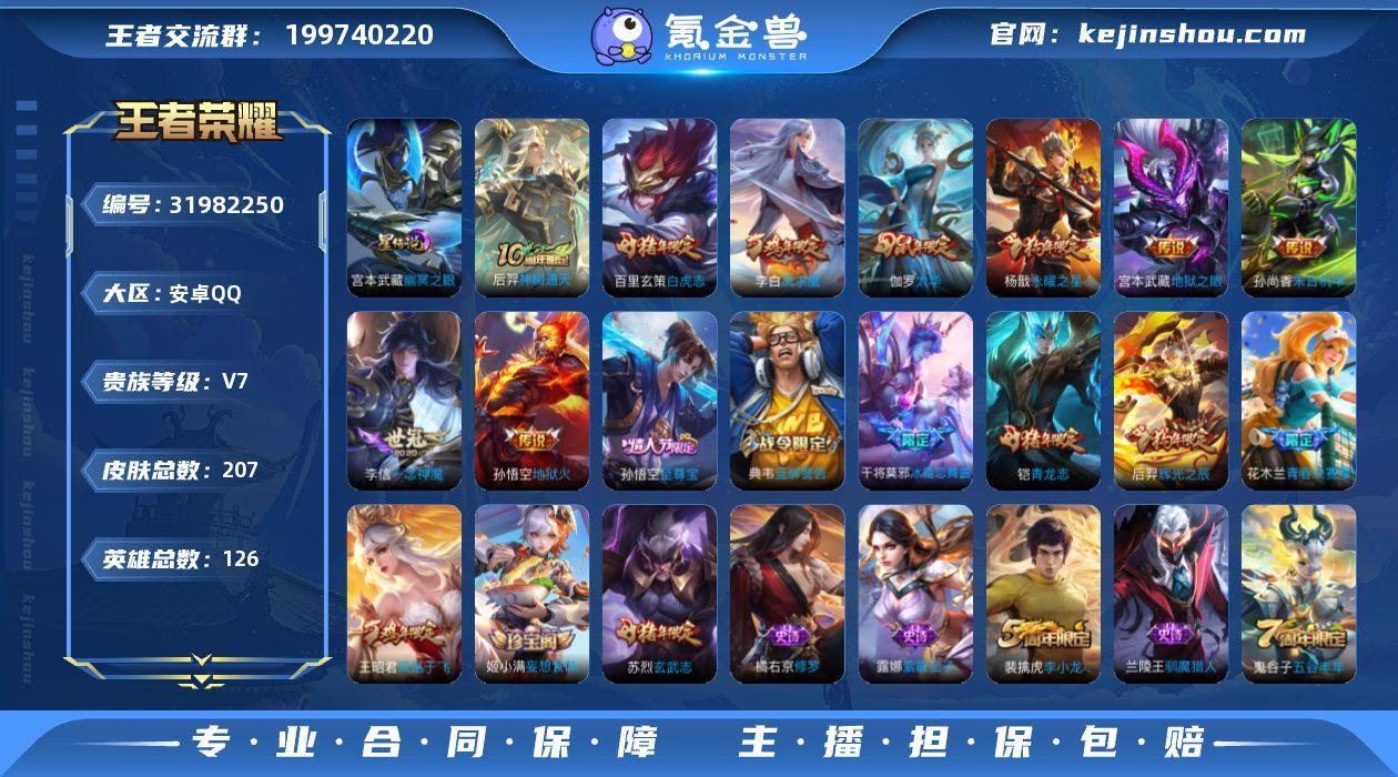 W14906,,可立即换绑无需挂单养号,铭文满级,,,传说9,,,星传说1,,按键1,,夺宝155,,安卓Q-V7-荣耀黄金I段位-126英雄-207皮肤-9传说-49史诗 【传说皮肤】:后羿神树通天,李信一念神魔,伽罗太华,百里玄策白虎志,杨戬永曜之星,李白凤求凰,孙尚香末日机甲,宫本武藏地狱之眼,孙悟空地狱火 【限定皮肤】:白起狰,狄仁杰阴阳师,虞姬凯尔特女王,赵云皇家上将,妲己热情桑巴,嬴政白昼王子,鲁班七号狮舞东方,庄周蜃楼王,高渐离死亡摇滚,阿轲迷踪丽影,孙膑妖精王,扁鹊炼金王,芈月重明,吕布猎兽之王,周瑜赤莲之焰,夏侯惇朔风刀,甄姬游园惊梦,曹操烛龙,典韦穷奇,典韦蓝屏警告,马可波罗逐梦之星,狄仁杰魔术师,狄仁杰万华元夜,达摩沙漠行僧,项羽海滩派对,老夫子醍醐杖,程咬金演武夺筹,刘邦夺宝奇兵,王昭君凤凰于飞,兰陵王驯魔猎人,花木兰青春决赛季,孙悟空至尊宝,牛魔御旌,后羿辉光之辰,李元芳银河之约,李元芳云中旅人,虞姬霸王别姬,钟馗神迹守卫,钟馗驱傩正仪,杨戬永曜之星,女娲朔望之晖,干将莫邪冰霜恋舞曲,雅典娜单词大作战,蔡文姬繁星吟游,太乙真人饕餮,鬼谷子原初探秘者,鬼谷子五谷丰年,铠青龙志,苏烈玄武志,苏烈千军破阵,百里玄策白虎志,百里玄策原初追逐者,弈星混沌棋,沈梦溪星空之诺,沈梦溪大漠名商,明世隐疑决卦,裴擒虎李小龙,裴擒虎擒涛扼浪,狂铁御狮,米莱狄御霄,云中君纤云弄巧,伽罗太华,盾山御銮,上官婉儿梁祝,蒙犽狂想玩偶喵,桑启海盐诗旅,张良古海寻踪,鬼谷子天穹祈灯,姬小满妄想食味 【年限皮肤】:王昭君凤凰于飞,李白凤求凰,杨戬永曜之星,后羿辉光之辰,苏烈玄武志,百里玄策白虎志,铠青龙志,伽罗太华 【赛季限定】:庄周蜃楼王,孙膑妖精王,扁鹊炼金王,虞姬凯尔特女王,白起狰,太乙真人饕餮,曹操烛龙,芈月...