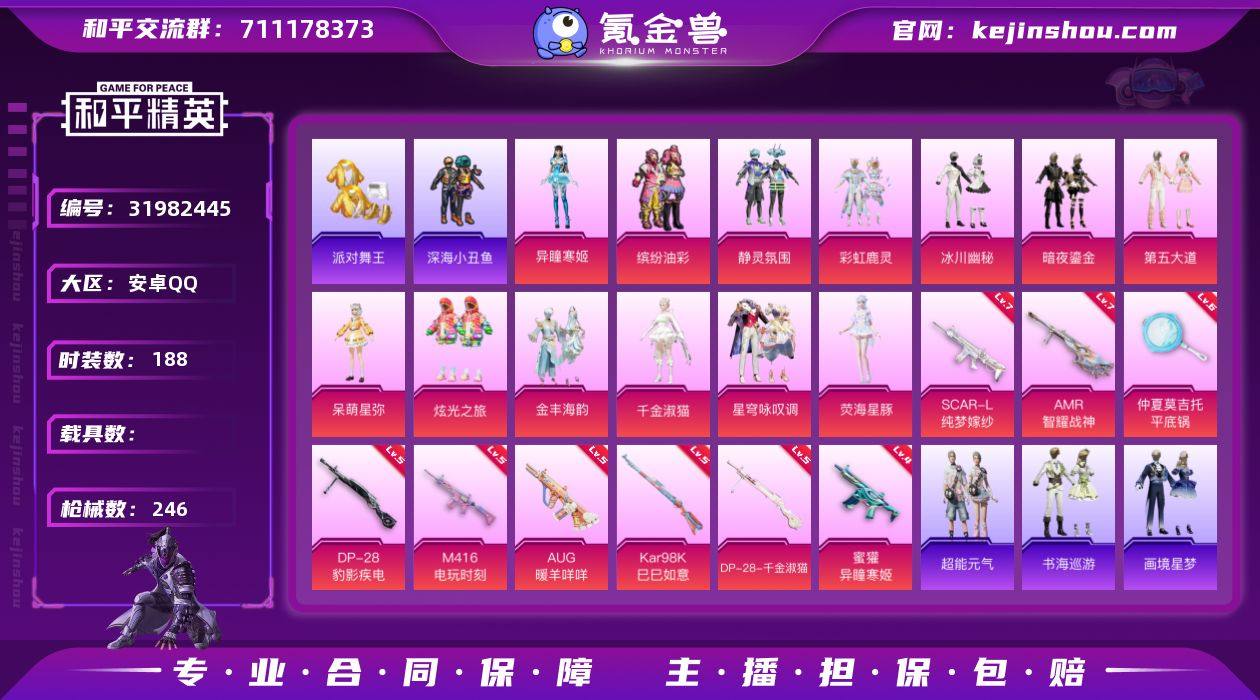 安卓 手Q-13粉装-10特效枪-0载具-3粉色飞行器-80345热力值-16王牌印记-188套装-246枪皮 【热门品类】:粉装-缤纷油彩,套装-派对舞王,套装-深海小丑鱼,套装-龟仙人,套装-红熊茄茄 【粉色套装】:粉装-静灵氛围,粉装-缤纷油彩,粉装-彩虹鹿灵,粉装-冰川幽秘,粉装-暗夜鎏金,粉装-第五大道,角色-呆萌星弥,粉装-炫光之旅,粉装-金丰海韵,角色-千金淑猫,粉装-星穹咏叹调,角色-荧海星豚,角色-异瞳寒姬 【粉色枪皮等级】:SCAR-L-纯梦嫁纱(七级),M416-电玩时刻(五级),AUG-暖羊咩咩(五级),蜜獾-异瞳寒姬(四级),Kar98K-巳巳如意(五级),Mk14-福马献瑞(五级),AMR-智耀战神(七级),DP-28-千金淑猫(五级),DP-28-豹影疾电(五级),平底锅-仲夏莫吉托(六级) 【粉色枪皮】:SCAR-L-纯梦嫁纱,M416-电玩时刻,AUG-暖羊咩咩,蜜獾-异瞳寒姬,Kar98K-巳巳如意,Mk14-福马献瑞,AMR-智耀战神,DP-28-千金淑猫,DP-28-豹影疾电,平底锅-仲夏莫吉托 【粉色飞行器】:炫彩糖果飞行器,冰川粉黛飞行器,时光之誓飞行器 【粉色降落伞】:心之恋语降落伞,夏日绵绵冰降落伞,梦之光华降落伞,冰川粉黛降落伞,音爆索尼克降落伞,第五大道降落伞,仲夏莫吉托降落伞,飒粉甜心降落伞,白勺歌姬降落伞,精灵梦叶罗丽降落伞,千金淑猫降落伞,临安公主降落伞,智耀战神降落伞,冷漠罗丽降落伞,喜羊羊与灰太狼降落伞,炫彩糖果降落伞 【稀有套装】:套装-龟仙人,套装-航行童话,套装-巳巳如意,套装-超能元气,套装-雪国风尚,套装-炫彩糖果,套装-雏菊兔兔,套装-萝兰蝴蝶,套装-小熊娃娃,套装-糖糖葫芦,套装-青团波波,套装-棉花软糖,角色-都市丽猫,角色-摩登魅猫,套装-燕燕于飞,套装-鱼渊荷华,套装-晶辉守护,角色-蜜桃派对,套装-粉恋花,套装-紫幽梦,套装-蓝冰羽,套装-极速光影,套装-彩虹兔,套装-云朵鹅,套...