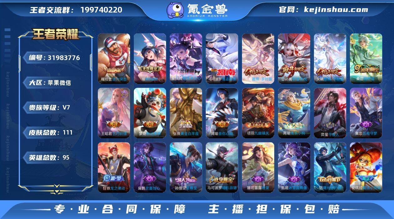【小国标鲁班大师1.2w战力高胜率,银标安琪拉杨玉环,热门怪盗基德,无双瑶真我赫兹,牛年公孙离】 5按键 5王者印记,没有五级铭文,可二次EE0376,苹果WX-V7-111皮肤-1典藏皮肤-1无双-2珍品传说-8传说-28史诗【荣耀典藏】:程咬金活力突击【无双皮肤】:瑶真我赫兹【珍品传说】:安琪拉酷洛米之心,马可波罗怪盗基德【小国标】:小国标鲁班大师【传说皮肤】:女娲愿照千秋盛,虞姬愿照岁时盈,桑启鸣野蒿,王昭君乞巧织情,周瑜音你心动,公孙离祈雪灵祝,张良黄金白羊座,梦奇胖达荣荣【限定皮肤】:蒙犽顽岩魄,姜子牙天穹之誓,狄仁杰阴阳师,赵云皇家上将,马可波罗暗影游猎,狄仁杰魔术师,项羽海滩派对,安琪拉魔法小厨娘,孙悟空至尊宝,公孙离祈雪灵祝,刘邦剑破天穹,周瑜熔金海岸【年限皮肤】:公孙离祈雪灵祝,女娲愿照千秋盛,虞姬愿照岁时盈【赛季限定】:刘邦剑破天穹,姜子牙天穹之誓,东皇太一噬灭天穹,太乙真人谧流熔炉,钟馗虚灵犬护,甄姬逆浪荇歌,亚瑟荣光之誓,牛魔星界战将,项羽九幽镇关【战令限定】:马可波罗暗影游猎,孙膑茶境仙,马超访茗客,周瑜线条小狗【史诗皮肤】:周瑜线条小狗,项羽九幽镇关,弈星守夜人,黄忠百相守梦,扁鹊灵蛊蚀心,狂铁龙之律动,孙膑茶境仙,牛魔星界战将,蒙犽顽岩魄,马可波罗暗影游猎,娜可露露晚萤,狄仁杰鹰眼统帅,阿轲节奏热浪,蔡文姬舞动绿茵,铠曙光守护者,百里守约特工魅影,雅典娜冰冠公主,诸葛亮黄金分割率,孙悟空至尊宝,张飞乱世虎臣,安琪拉魔法小厨娘,妲己魅力维加斯,嬴政暗夜贵公子,孙尚香水果甜心,宫本武藏鬼剑武藏,狄仁杰魔术师,王昭君偶像歌手,甄姬冰雪圆舞曲,赵云皇家上将【其他皮肤】:鲁班七号班班快跑,艾琳鹤鸣心笺,亚瑟荣光之誓,鬼谷子克喵,莱西奥踏浪烽翎,甄姬逆浪荇歌,白起死霸装,姬小满小满鸭,露娜命...