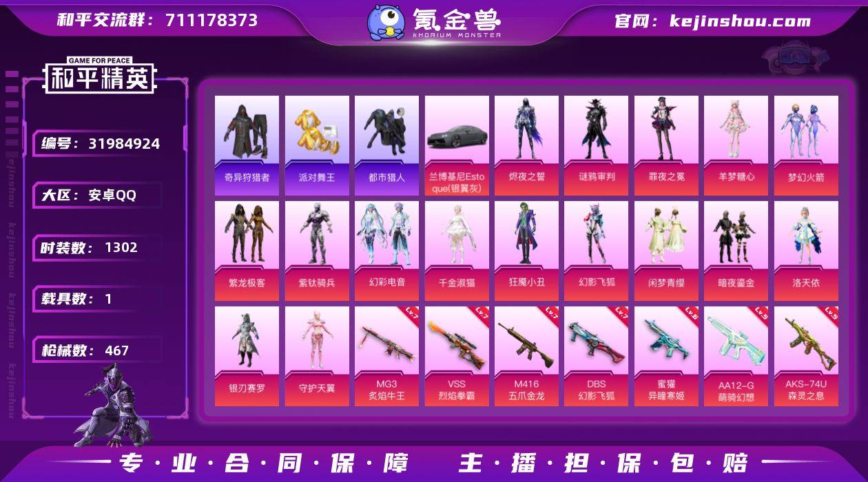 和平精英号,装备多,皮肤载具齐全,账号安全,喜欢直接拍~
