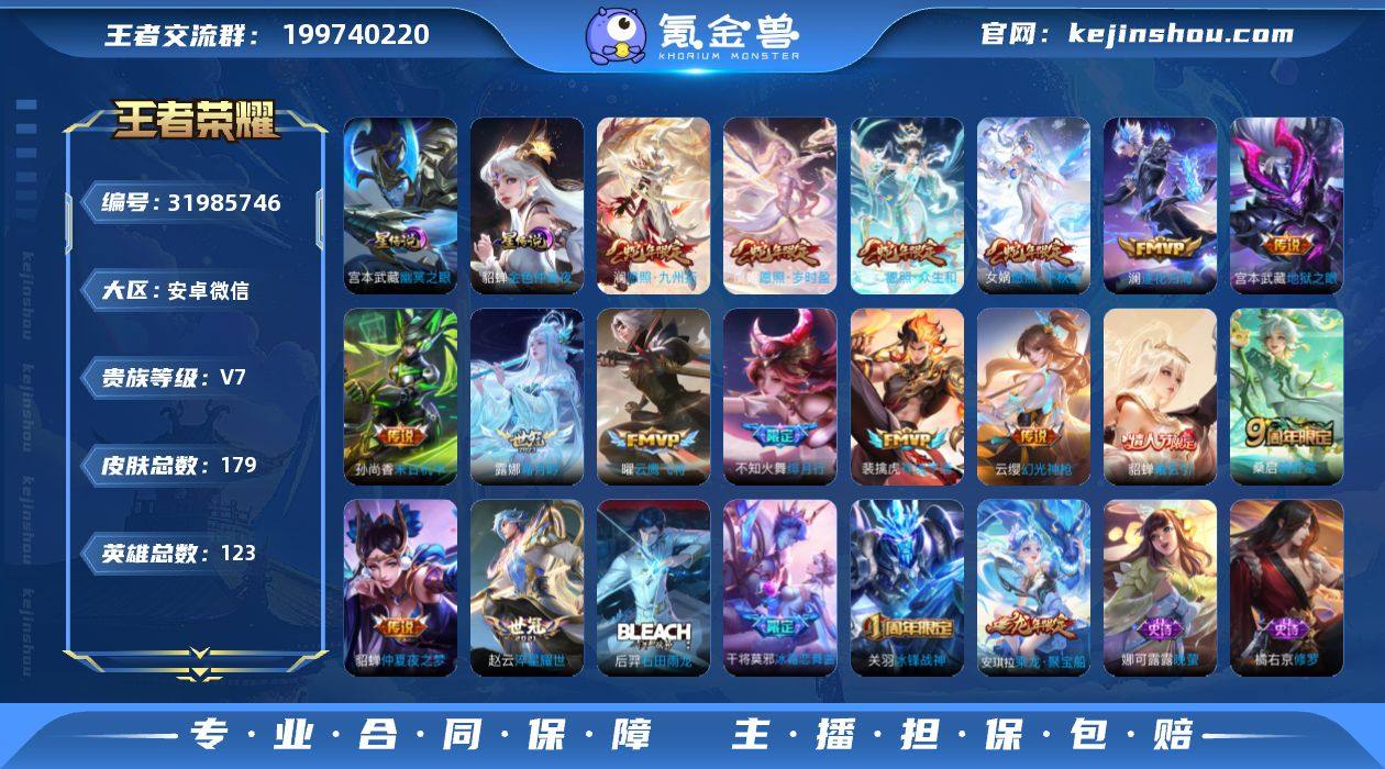 【特价出售】安卓V 可二次 贵族7 星元皮肤2 传说皮肤16 史诗皮肤43 皮肤数量179 英雄123【星元皮肤】幽冥之眼 金色仲夏夜 【传说皮肤】愿照众生和 愿照九州拓 愿照岁时盈 愿照千秋盛 祥瑞亨通 幻光神枪 鸣野蒿 曦玄引 仲夏夜之梦 末日机甲 地狱之眼 绯月行 逐花归海 云鹰飞将 霜月吟 淬星耀世 【史诗皮肤】石田雨龙 茶境仙 百相守梦 谪仙醉月 魔术师 皇家上将 乘龙聚宝船 热力回旋 曙光守护者 水晶猎龙者 冰霜恋舞曲 五谷丰年 高山流水 梁祝 冰锋战神 蔬乡物语 真爱魔法 胡桃异想国 电玩爆裂旋风 赏金猎手 时之恋人 修罗 晚萤 猫狗日记 天才门将 心灵骇客 德古拉伯爵 千年之狐 幽灵船长 暗夜猫娘 魅力维加斯 鬼剑武藏 地狱岩魂 紫霞仙子 电玩小子 金属风暴 偶像歌手 摇滚巨星 冰雪圆舞曲 黎明之约 原初追逐者 鹰眼统帅