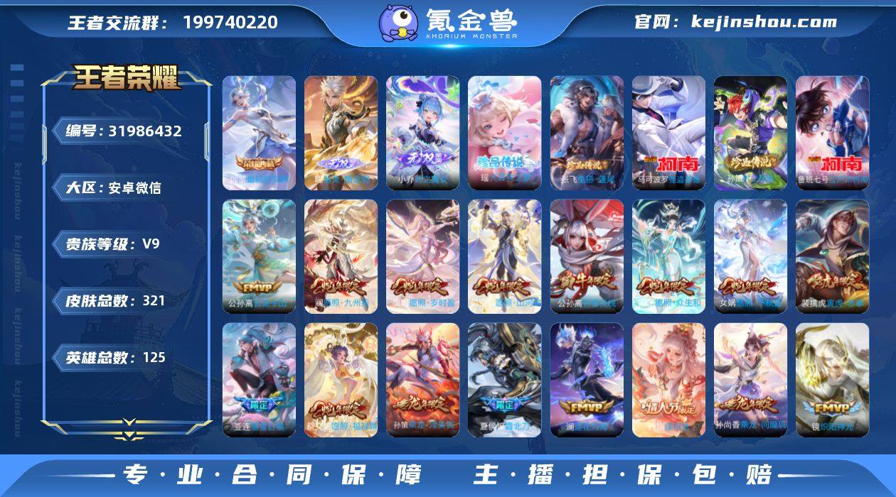 【V9精品号推荐,5珍品,多限定质量传说】 8王者印记 可二次KK5226 安卓WX-V9-321皮肤-1典藏皮肤-2无双-5珍品传说-49传说-106史诗【英雄全皮】:姜子牙全皮,海月全皮,司空震全皮,海诺全皮【荣耀典藏】:伽罗最初的交响【无双皮肤】:曜器灵螭龙剑,小乔时之魔女【珍品传说】:瑶大耳狗之梦,张飞兔狲蓬尾,孙策时之奇旅,鲁班七号江户川柯南,马可波罗怪盗基德【传说皮肤】:公孙离云诺千山,西施续相思,杨玉环星之鸣奏,后羿千劫归真,司空震愿照山河定,女娲愿照千秋盛,妲己愿照众生和,澜愿照九州拓,蔡文姬愿照福禄聚,虞姬愿照岁时盈,云缨幻光神枪,桑启鸣野蒿,夏侯惇霜北刀,铠冥王哈迪斯,云中君群星魔术团,墨子黄金天蝎座,海月金乌负日,亚连落雪白狼,吕布曦玄引,貂蝉曦玄引,典韦战鼓燎原,孙尚香乘龙问璇玑,孙策乘龙淬吴钩,赵云乘龙铭钟鼎,铠琥珀纪元,澜逐花归海,鲁班七号时之奇旅,兰陵王影龙天霄,上官婉儿妄想奇谈,夏洛特浮生妄,孙悟空齐天大圣,小乔山海琳琅生,吕布怒海麟威,李白诗剑行,不知火舞绯月行,孙策末日机甲,裴擒虎寅虎赤拳,公孙离祈雪灵祝,诸葛亮时雨天司,镜炽阳神光,虞姬启明星使,孙悟空零号赤焰,李信一念神魔,张良黄金白羊座,干将莫邪久胜战神,达摩黄金狮子座,梦奇胖达荣荣,孙尚香末日机甲,宫本武藏地狱之眼【限定皮肤】:夏侯惇霜北刀,铠冥王哈迪斯,暃埋骨钱,蒙犽顽岩魄,蔡文姬夏日便利店,大乔绒语心约,虞姬夏日便利店,姜子牙天穹之誓,杨戬破阵退雄兵,李白谪仙醉月,狄仁杰阴阳师,小乔山海琳琅生,赵云皇家上将,赵云百木心枪,嬴政白昼王子,孙尚香蔷薇恋人,鲁班七号时之奇旅,阿轲迷踪丽影,白起夜都怪侠,芈月白晶晶,马可波罗暗影游猎,狄仁杰魔术师,项羽海滩派对,兰陵王影龙天霄,兰陵王驯魔猎人,不知火舞绯月行,孙悟空零号赤...
