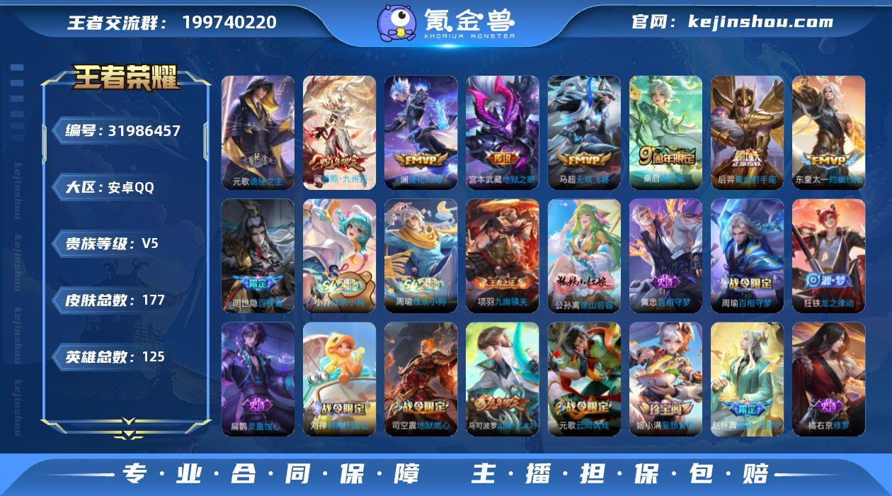 贵族等级:V5 典藏皮肤数:0 珍品无双皮肤数:0 无双皮肤数:0 珍品传说皮肤数:0 传说皮肤数:8 史诗皮肤数:60 皮肤数:177 英雄数:125 段位:王者 卖家说:网络男生极品号现在急需用钱所以出的号上元歌金标马超澜等热门英雄都有标历史成就也还可以