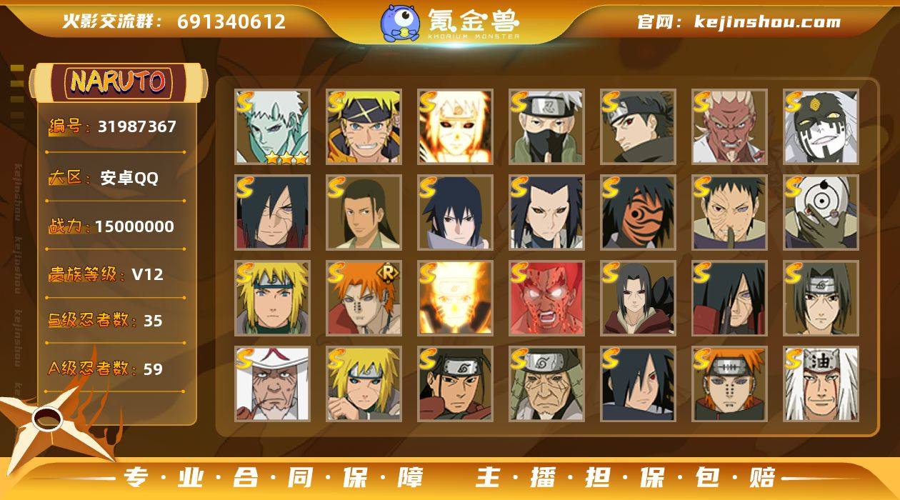 实名: 可修改 贵族等级: V12 S忍数: 35 A忍数: 59 战力值(万): 1500 S级忍者: 宇智波鼬「秽土转生」,佩恩·天道「超」,宇智波斑「秽土转生」,宇智波斑 「木叶创立」,波风水门「秽土转生」,猿飞日斩「秽土转生」,千手柱间,佩恩「天道」,大蛇丸,波风水门,纲手,自来也,宇智波鼬 「须佐能乎」,自来也「仙人模式」,猿飞日斩,迈特凯「死门」,三代目风影 「秽土转生」,大野木 「忍界大战」,宇智波带土 「忍界大战」,自来也 「舞之豪杰」,宇智波斑「白面具」,漩涡鸣人 「九喇嘛连结」,大筒木金式「博人传」,春野樱 「忍界大战」,神秘面具男 「红夜之刃」,宇智波佐助「永恒万花筒」,千手柱间·木叶创立,宇智波斑「秽土转生·解」,大筒木桃式,艾「忍界大战」,宇智波止水「须佐能乎」,旗木卡卡西「须佐能乎」,波风水门「九喇嘛连结」,漩涡鸣人·宇智波佐助,宇智波带土「十尾人柱力」 通灵兽: 熊猫