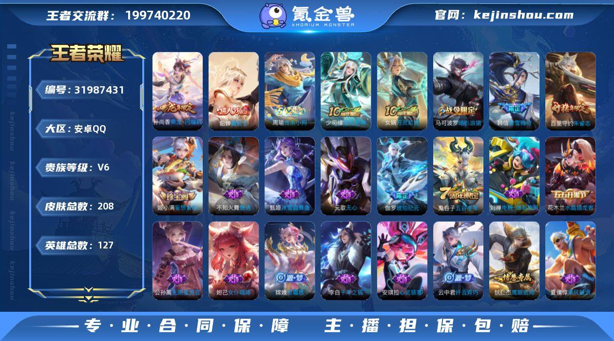 贵族5/皮肤217/典藏1/传说7/史诗68/英雄128/弑枪猎影/幽冥之眼/愿照·九州拓/鸣野蒿/霜月吟/山海·苍雷引/无双飞将/一念神魔/地狱之眼/天穹之誓(s36)/阴阳师/皇家上将/蔷薇恋人/死亡摇滚/迷踪丽影/赤莲之焰/云间偶戏/无心/朔风刀(s17)/山海·玄木吟/魔术师/万华元夜(s22)/沙漠行僧(s26)/海滩派对/醍醐杖(s20)/冰锋战神/演武夺筹(s23)/夺宝奇兵/飞衡/驯魔猎人/金庭之子(s27)/潮玩骑士王/至尊宝/银河之约/云中旅人(s29)/驱傩正仪(s24)/冰霜恋舞曲/黎明之约/原初探秘者(s21)/五谷丰年/千军破阵(s25)/混沌棋(s18)/星空之诺/大漠名商(s28)/疑决卦(s19)/李小龙/擒涛扼浪(s31)/纤云弄巧/天狼溯光者/梁祝/暖冬·兔眠/探海日志(s32)/海盐诗旅(s30)/星界游侠/古海寻踪(s33)/百解令(蒙犽)/蒙恬荣光圣徽/鬼谷子天穹祈灯(S34)/妄想食味/龙武盛年/噬灭天穹(s37)/谧流熔炉/虚灵犬护/逆浪荇歌/荣光之誓/星界战将/九幽镇关/光弋星穹/往忆晖光/紫霞仙子/暗夜猫娘/圣诞恋歌/冰雪圆舞曲/偶像歌手/地狱岩魂/鬼剑武藏/水果甜心/摇滚巨星/魅力维加斯/龙骑士/金属风暴/圣诞狂欢/绅士熊喵/幽灵船长/千年之狐/末日机甲-吕布/乱世虎臣/水晶猎龙者/德古拉伯爵/乘风破浪/缤纷独角兽/暗隐猎兽者/心灵战警/特工魅影/曙光守护者/舞动绿茵/逐浪之夏/星夜王子/节奏热浪/猫狗日记-孙策/猫狗日记-大乔/鹰眼统帅/修罗/神威/天秀·启明/月团寄思/化蝶舞/龙之律动/罗小黑战记/万灵启世/巫礼祀神/教廷特使/街头霸王/哥特玫瑰/爱心护理/大发明家/忍·炎影/白色死神/西部大镖客(牛魔)/东方不败/救世之瞳/天使之翼/少女阿狸/黄金武士/死亡骑士/拳王/兔女郎/五福同心/花好人间/万事如意/万象初新/阿尔法小队/纽约教父/汉昭烈帝/龙腾万里/海滩丽影/霸王丸/命运角斗场/功夫老勺/掌控之力/敏锐之力/坚韧之力/守护之力/科学大爆炸/虹云星官/奇妙博物学/次元突破/黑桃队长/...