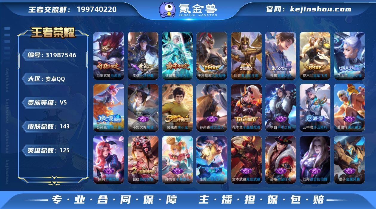 WZ4197219|手Q安卓 125英雄 143皮肤 贵族等级5 时雨天司 挚爱之约 冠军飞将 黄金射手座 神树通天 一念神魔 久胜战神 幻光神枪 白虎志 鸣野蒿 千年之狐 玩趣恶龙 乘风破浪 蔷薇恋人 节奏热浪...