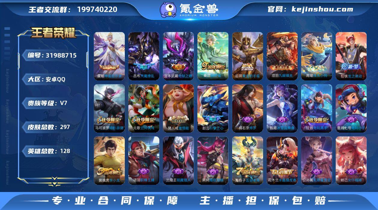 【297皮肤1水晶4传说可秒换绑】安卓QQ-128英雄-297皮肤【1水晶】 神鉴启示录【星元皮肤】幽冥之火【传说皮肤】天魔缭乱 鸣野蒿 地狱之眼 黄金射手座【史诗皮肤】荣光圣徽 九幽镇关 龙之律动 顽趣 舞动绿茵 幽灵船长 繁星吟游 女仆咖啡 魅力维加斯 猫狗日记 魔术师 鹰眼统帅 圣诞恋歌 箭羽风息 无限星赏官 鬼剑武藏 水晶猎龙者 修罗 暗隐猎兽者 驯魔猎人 航海奇遇记 千年之狐 银河之约 地狱岩魂 德古拉伯爵 天才门将 电玩小子 狮舞东方 末日机甲 暗影游猎 狂想玩偶喵 胡桃异想国 金属风暴 逐梦之翼 梁祝 李小龙 水果甜心 乘风破浪 缤纷独角兽 冰冠公主 黎明之约 心灵战警 遇见飞天 摇滚巨星 优雅恋人 云间偶戏 纤云弄巧 乱世虎臣 皇家上将 引擎之心 冰雪圆舞曲 游园惊梦 乐园奇幻夜 王者之锤 猪悟能 高山流水 五谷丰年 未来纪元 电玩高手 暗夜猫娘 节奏热浪 迷踪丽影 心灵骇客 星夜王子 原初追逐者【勇者皮肤】径山谋武 鹤鸣心笺 玫蓝誓约 浪漫序章 溯影追猎 虚灵犬护 线条小狗 完美运算 古海寻踪 狰 西部游侠 探海日志 云中旅人 命运角斗场 零食大作战 时尚教父 单词大作战 危途狂花 流音漫舞 金庭之子 海盐诗旅 灵野札记 春野闲踪 时空谍影 功夫炙烤 金色潮汐 锦麟游梦 逆浪荇歌 命运加冕 布丁狗之约 踏浪烽翎 归虚梦演 星梦巡礼 灵卦秘语 荣光之誓 景韶洛都 死亡摇滚 万象初新 霸王丸 龙腾万里 幻乐之宴 原初探秘者 街头霸王 教廷特使 阿尔法小队 兔女郎 炽热元素使 御狮 特工战影 功夫老勺 醍醐杖 敏锐之力 无尽征程 夺宝奇兵 万事如意 纽约教父 汉昭烈帝 秘密基地 哥特玫瑰 乓乓大师 黑桃队长 野性能量 御霄 红桃皇后 重明 虹云星官 疑决卦 进击墨子号 神迹守卫 次元突破 西部大镖客 制霸全明星 御旌 重装意志 鲨炮海盗猫 星空之诺 坚韧之力 千军破阵 天使之翼 妖精王 归虚梦演 沉稳之力 饕餮 华丽摇滚 幻想奇...