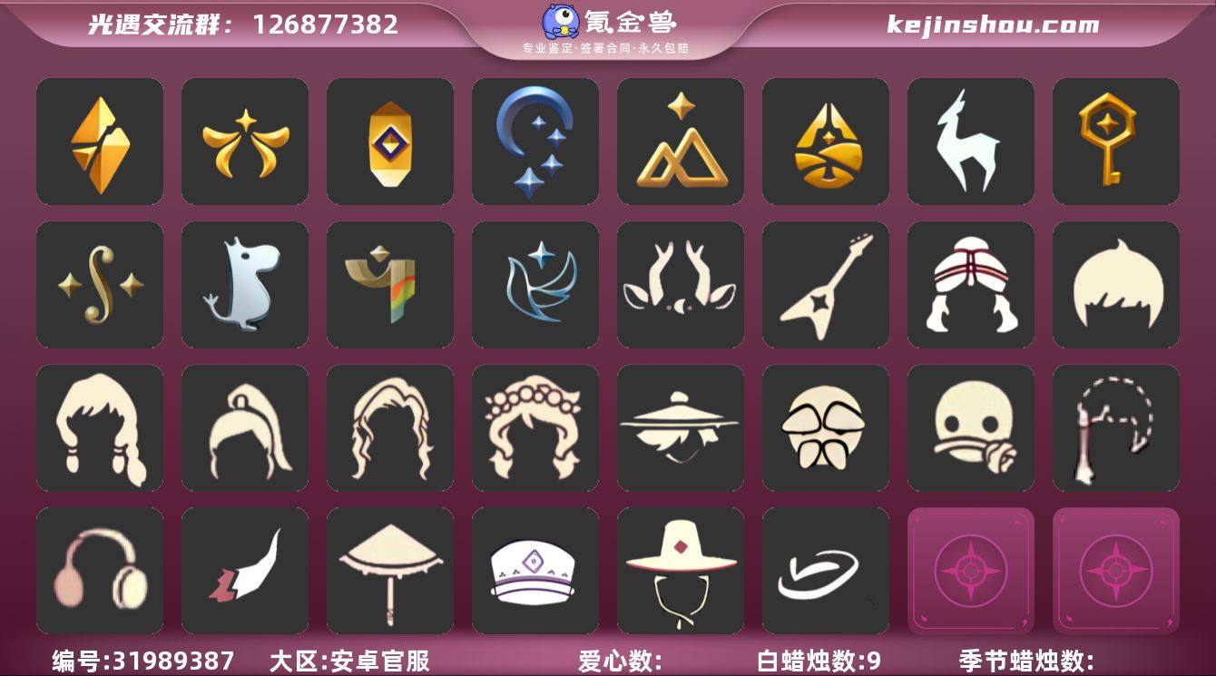 白枭 欧若拉之声 九色鹿角 妮妮长裙 皮皮猫斗篷 青衫落拓 星月头冠 详情看图,价格可刀 资源:蜡烛127 爱心67 红烛3 12翼 已毕业地图:雨林 霞谷 墓土 毕业季节:表演季 破晓季 欧若拉季 追忆季 夜行季 拾光季 归巢季 九色鹿季 姆明季 青鸟季 二重奏季季卡 梦想季季卡 毕业物品: 黄眉企鹅面具 燕尾斗篷 白枭发型 双翼遥鲲斗篷 冥龙斗篷 留辫蘑菇头 高领舞服 透明蝶翼斗 肩带 追忆之书 棕熊面具 绒毛斗篷 粗框眼镜 季卡相机 西部帽 五塑彩羽发 五塑彩带斗 九色鹿丸子头 九色鹿丝带裤 九色鹿飞天斗篷 姆明大伞 姆明抱枕 姆明长裙 青鸟面饰 青鸟斗篷 稀有礼包:大桔大利 星月头冠 九色鹿角 圣诞鹿角 青衫落拓礼包 欧若拉之声 秋千 跷跷板 热门裤子:遥鲲长袍 绑带舞服 奔月长袍 妮妮长裙 海洋武士裤 白棉裤 搓澡巾 紧身连体衣 武士裤 小丑服 女仆围裙 红色流珠裙 探险燕尾服 热门面具:矮人面具 黄鼠狼面具 凤凰面具 黄眉面具 一字眉 棕熊面具 盲僧眼罩 青鸟季面具 龙头 玫瑰面具 黑脸 鸟羽面具 热门发型:海藻头 爆炸头 雨妈 卡卡 平菇 龙骨 公主头 粗辫 书虫 正太头 高马尾 明制帽 郡主头 斗笠 虚荣 白枭 圆环发辫 留辫蘑菇头 彩色脏辫 彩羽发型 兔子头 樱花头 遥鲲发型 猫猫头 绊爱发型 热门头饰:粗框眼睛 飞羽发饰 橘子发饰 花环 珊瑚发饰 晃悠悠 红耳机 星月头冠 九色鹿鹿角 探险耳机 圣诞鹿角 热门斗篷:五角星斗篷 红金斗篷 黑金斗篷 汉服斗篷 暗花斗篷 冥龙斗篷 遥鲲长斗 展翼圆环斗 透明斗篷 小浣熊斗篷 毛绒斗 布丁斗篷 布条斗篷 国风斗篷 飘带斗篷 双排扣斗篷 史力奇斗篷 姆明季斗篷 星空斗篷 鸟羽斗篷 地球日斗篷 彩虹斗篷 暗彩斗篷 皮皮猫斗篷 绊爱斗篷 青衫落拓斗篷 热门背饰...