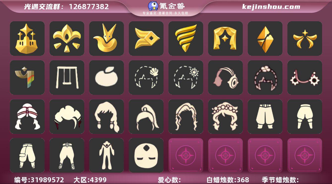 ✅稀有礼包:必胜客装扮,玉兔拖鞋,雪人暖靴,影院套餐,水母肩饰,巫师帽,绊爱套装,桔子,鲤跃龙门,小狗头饰,雪花发卡,贝壳发卡,玉兔,大耳狗头饰,四叶草,星月头冠,彩虹耳机,巫树犄角,圣诞鹿角,TGC斗篷,王子围巾,欧若拉之翼,新春福娃,线框斗篷,蝙蝠斗,蛛网斗篷,暖冬瑞雪,白雪斗篷,粽叶斗篷,青衫落拓,音韵吉他,欧若拉之声,小海牛发饰,中秋灯笼,秋千,跷跷板,花憩茶桌,狐狸背包,小船,冥龙南瓜,皮皮猫,水晶球,周年抱枕