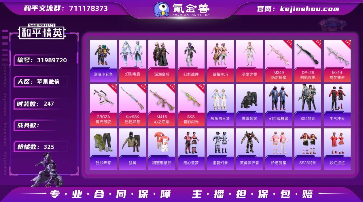 5粉装 10粉枪 247套装 325枪皮 60热门 草莓生巧 源星混沌 机械征服者 滨海厨神 吉莉礼服 金鼠迎春 星梦畅游 智慧隐士 北国孤狼 幻羽潜行 虎虎生威吉莉 跃动心情 疯狂小兔子 空投萌叽 白熊同盟 炫蓝之夏 萌黄之夏 黄色名流 牛气满满 猛禽 甜蜜告白 青春冒险家 潮流游乐家 破晓战魂 鹤鸣 萌趣颜团子 特种颜团子 镭射皇者 银白舞王 迅捷之星 潮流炫酷 治愈之星 科技之星 飞行日记 熠彩粉晶 莱茵河畔 暴风机械师 神气柴柴 时空追击者 暗夜傀儡 幻彩翩翩 柠萌假日 王牌教练 飞驰魅影 龟仙人 音速流光 冷焰舞者 空岛之星 贵族骑装 惊鸿侠骨 霸义无双 萌趣咩咩 竞技名士 清新柠檬 娇憨猪猪 锦衣飞扬 战地督导 雪鹰学院 灼焰舞者 龙的传人 玉兔迎春 帅气教官 特战装甲 田园牧歌 轻风白浪 湖蓝色名流 迅猛虎鲸 蓝色守护者 光之冒险 雨林探路者 绯格组合 野性山猫 浪漫假日 青春校园 龙腾端午 冰冻风暴 滨海假日 完美偶像 千禧之恋 西部风情 街头潮人 怒火燎原 蓝彩潮人 绮丽涂鸦 耀眼新星 夜莺强袭者 旭日情侣 朋克治安官 野性战心 野性战魂 潮流先锋 风行保卫者 沙漠毒蛇 格斗先锋 幻世战舞者 麻辣教官 神奈川冲浪里 金耀舞者 幻影武者 雪山征服者 都市魅力 冰川特警 夏日音浪 热血青春 青涩年华 探宝勇士 海上生明月 酷潮明星 诡谋托雷基亚 奇趣章鱼 深渊皇后 幻影战神 幻彩电音 M416-心之恋语(7级) M249-绝对恒星(7级) S686-生命誓言 GROZA-影袭 GROZA-梨园星光 S1897-炫彩节奏 Mini14-金玉无双 Mini14-耀粉歌者 Kar98K-影袭 S1897-飞驰魅影 DBS-焰鹰斗篷 S12K-幻世战舞者 SKS-碧影闪光(7级) DP-28-焰鹰斗篷 GROZA-马卡龙 汤姆逊-暗夜鎏金 M416-红色方程式 汤姆逊-耀粉歌者 S12K-娇憨猪猪 GROZA-懵萌河马 S686-红色方程式 汤姆逊-环太平洋 GROZA-治愈之星 野牛-青春冒险家 AUG-耀粉歌者 S12K-玩趣呆呆 QBZ
