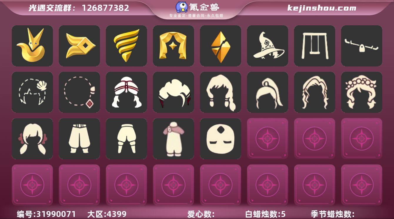 ✅稀有礼包:女巫长裙,玉兔头饰,多彩绒帽,暖冬绒帽,巫师帽,鲤跃龙门,贝壳发夹,玉兔头饰,彩虹耳钉,巫树犄角,圣诞鹿角,tgc斗篷,王子围巾,星球夹克,蝙蝠斗篷,蛛网斗篷,新春福娃,年年有鱼,暖冬瑞雪,白雪斗篷,绊爱套装,雏鸟之琴,音韵吉他,中秋灯笼,夏日阳伞,秋千,跷跷板,花憩茶桌,小憩茶桌,小船,电吉他