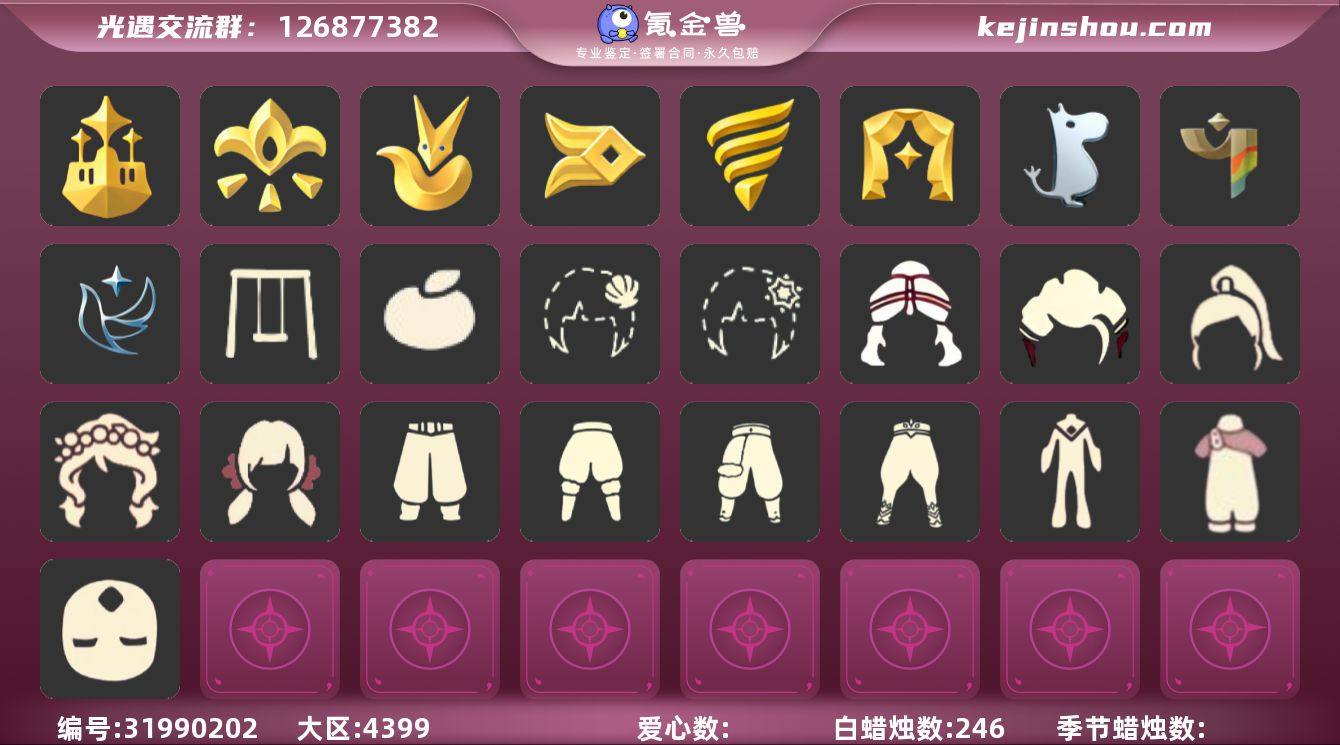 巫师帽蝙蝠斗篷明制帽蛛丝斗篷欧若拉之翼星月头冠九色鹿鹿大耳狗抱枕蛛丝斗篷 资源:蜡烛506 爱心74 10翼 已毕业地图:雨林 霞谷 墓土 毕业季节:表演季 破晓季 欧若拉季 追忆季 夜行季 拾光季 归巢季 九色鹿季 筑巢季 二重奏季 稀有礼包:兔子鞋 彩虹帽 橘子发饰 绊爱 星月头冠 九色鹿鹿 欧若拉之翼 蛛丝斗篷 线框斗篷 白雪斗篷 欧若拉之声 冥龙南瓜 大耳狗抱枕 热门裤子:背带裤 遥鲲长袍 绑带舞服 奔月长袍 白棉裤 搓澡巾 紧身连体衣 武士裤 小丑服 美工衣 兔年套装 热门面具:矮人面具 狐狸面具 黄鼠狼面具 黄眉面具 一字眉 棕熊面具 盲僧眼罩 黑脸 红脸蛋 热门发型:海藻头 爆炸头 雨妈 卡卡 平菇 箬笠 蝴蝶结 公主头 粗辫 书虫 总裁头 正太头 高马尾 明制帽 郡主头 斗笠 虚荣 白枭 圆环发辫 留辫蘑菇头 李逍遥发型 彩色脏辫 彩羽发型 兔子头 双辫发型 春丽丸子头 樱花头 彩虹帽 南瓜头 巫师帽 猫猫头 绊爱发型 热门头饰:尖角牛仔帽 牛仔帽 橘子发饰 蓝色音乐会 晃悠悠 红耳机 星月头冠 九色鹿鹿角 热门斗篷:花瓣斗篷 红金斗篷 黑金斗篷 白金斗篷 蝴蝶斗篷 汉服斗篷 燕尾服斗篷 暗花斗篷 冥龙斗篷 遥鲲长斗 展翼圆环斗 欧若拉之翼 小浣熊斗篷 毛绒斗 布丁斗篷 布条斗篷 飘带斗篷 国风斗篷 灰色斗篷 双排扣斗篷 新春福娃斗篷 樱花斗篷 马蹄莲斗篷 地球日斗篷 彩虹斗篷 暗彩斗篷 线框斗篷 蝙蝠斗篷 蛛丝斗篷 白雪斗篷 绊爱斗篷 透明斗 热门背饰:号角 冥龙号角 相机 进阶版相机 椅子 吊床 星星灯 鲲灯 女巫茶桌 三角钢琴 冥龙南瓜 二重奏壁画 mini小手办 大耳狗抱枕,雨林,霞谷,暮土