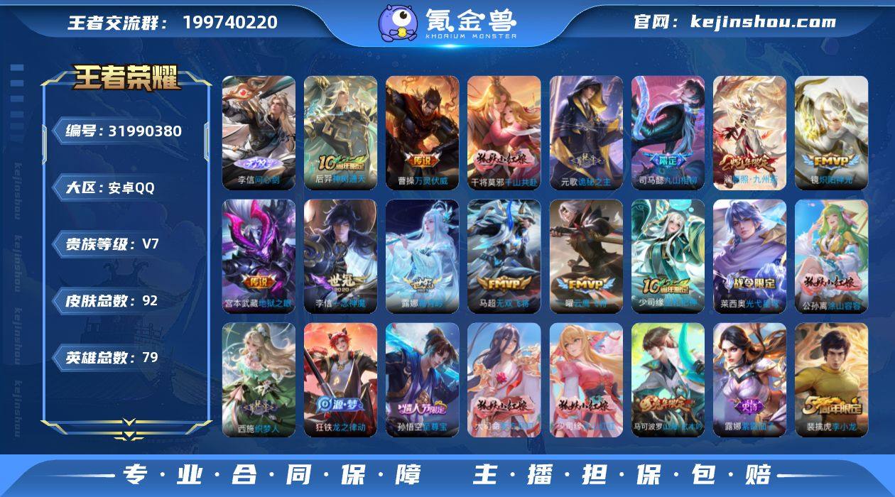 【V7 1无双 12传说 92皮肤 79英雄】1无双12传说 问心剑 至尊宝 云鹰飞将,一念神魔,炽阳神光,无双飞将,地狱之眼,霜月吟,愿照·九州拓,九山相柳,诡秘之主,千山共赴,万灵伏威,神树通天 至尊宝,无心,李小龙,无限星赏官,特工魅影,曙光守护者,天秀·启明,山海·玄木吟,冰冠公主,皇家上将,魅力维加斯,紫霞仙子,水果甜心,蔷薇恋人,星夜王子,鬼剑武藏,魔术师,鹰眼统帅,舞动绿茵,金属风暴,水晶猎龙者,节奏热浪,心灵战警,真我赫兹(镜),真我赫兹(百里守约),涂山红红,东方月初,龙之律动,织梦人,涂山容容,百相守梦,光弋星穹,巫礼祀神经,编号:QNSYT54