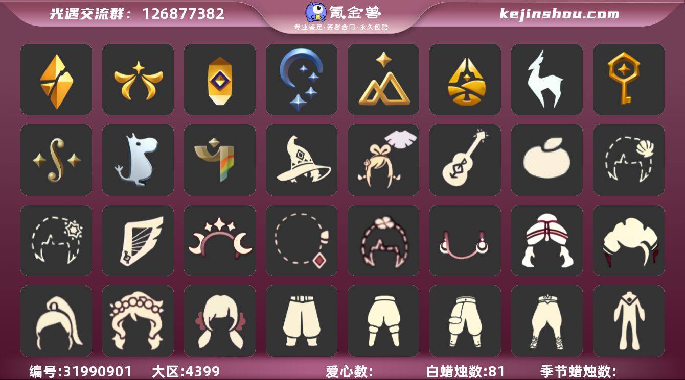 10季10翼白枭巫师帽武士裤透明蝶翼拖鞋虚荣正太盲僧眼罩搓澡巾 资源:蜡烛7 爱心63 翼10 已毕业地图:雨林 霞谷 墓土 毕业季节:潜海季 表演季 破晓季 欧若拉 追忆季 彩染季 青鸟季 半九色鹿 夜行卡 拾光卡 毕业物品:单边小辫 暗红斗篷 氧气面具 黄眉企鹅面具 燕尾斗篷 白枭发型 双翼遥鲲斗篷 冥龙斗篷 留辫蘑菇头 高领舞服 透明蝶翼斗 肩带 追忆之书 彩染围巾斗篷 辉光羚羊面具 青鸟面饰 青鸟斗篷 稀有礼包:爱丽丝围裙套装 玉兔拖鞋 姆明饰品 巫师帽 绊爱套装 大桔大利 贝壳发夹 玉兔头饰 满月耳坠 冥龙号角 花憩茶桌 热门裤子:遥鲲长裙 绑带舞服 墨绿长裤 奔月长裙 海浪阔腿裤 爱丽丝装扮 玉兔拖鞋 白棉裤 c 武士裤 小丑服 女仆围裙 流珠红色连 探险燕尾礼 热门面具:矮人面具 黄鼠狼面具 潜海面具 黄眉面具 一字眉 盲僧眼罩 向导面具 青鸟面具 黑脸 鸟羽面具 热门发型:海草头 爆炸头 雨妈 卡卡 平菇 龙骨 公主头 粗辫 水母头 书虫 正太头 高马尾 郡主头 虚荣 白枭 圆环发辫 留辫蘑菇头 兔子头 樱花头 猫耳 巫师帽 绊爱 热门头饰:鸟羽发饰 花环 珊瑚发饰 晃悠悠 红耳机 单边发饰 探险耳机 桔子发饰 贝壳发饰 玉兔发饰 满月耳环 热门斗篷:五星斗篷 红金斗篷 黑金斗篷 白金斗篷 燕尾服斗篷 暗花斗篷 冥龙斗篷 遥鲲长斗 展翼圆环斗篷 透明蝶翼 小浣熊斗篷 镂空三条斗篷 镂空斗篷 彩染季围巾斗篷 红色探险斗篷 星空斗篷 鸟羽斗篷 绊爱斗篷 热门背饰:追忆围巾 号角 相机 鲲灯 风铃 冥龙号角 花憩茶桌,白棉裤,搓澡巾,女仆围裙,武士裤,爱丽丝围裙,绑带舞服